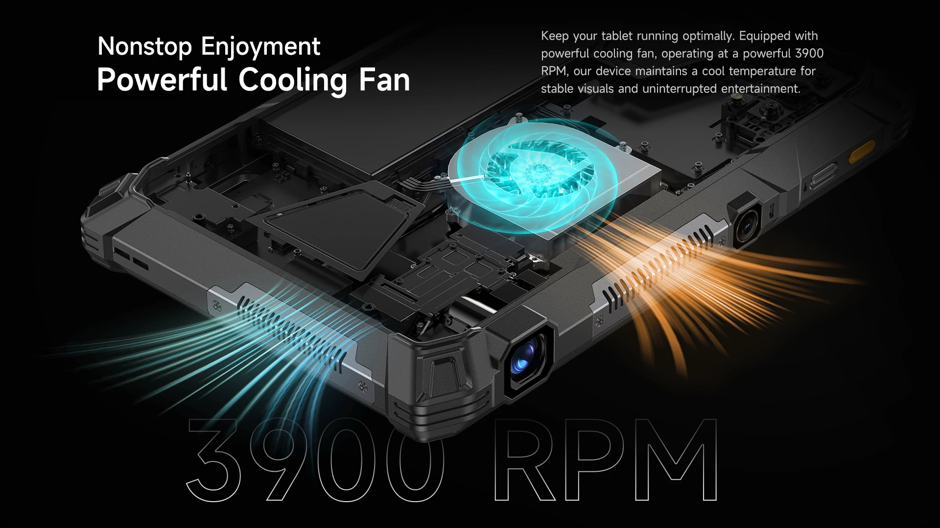 Keep your tablet running optimally. Equipped with powerful cooling fan, operating at a powerful 3900 RPM, our device maintains a cool temperature for stable visuals and uninterrupted entertainment.