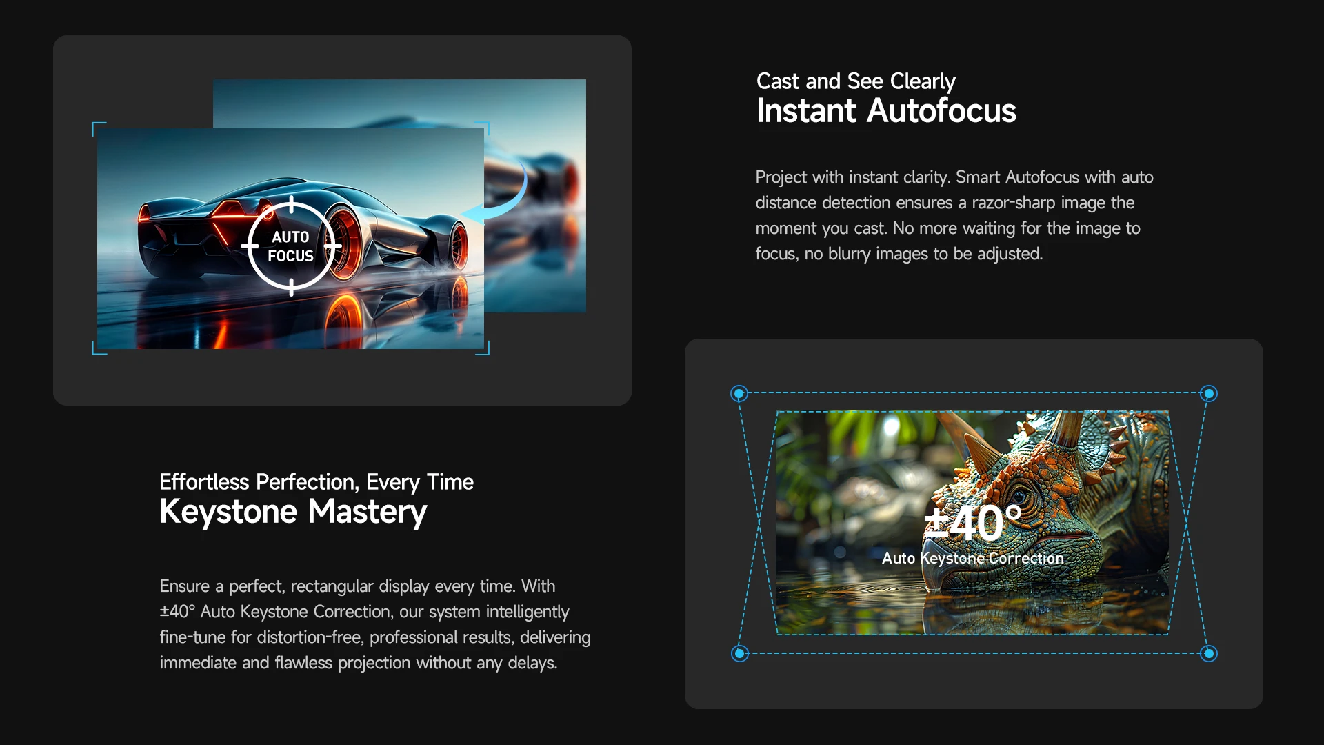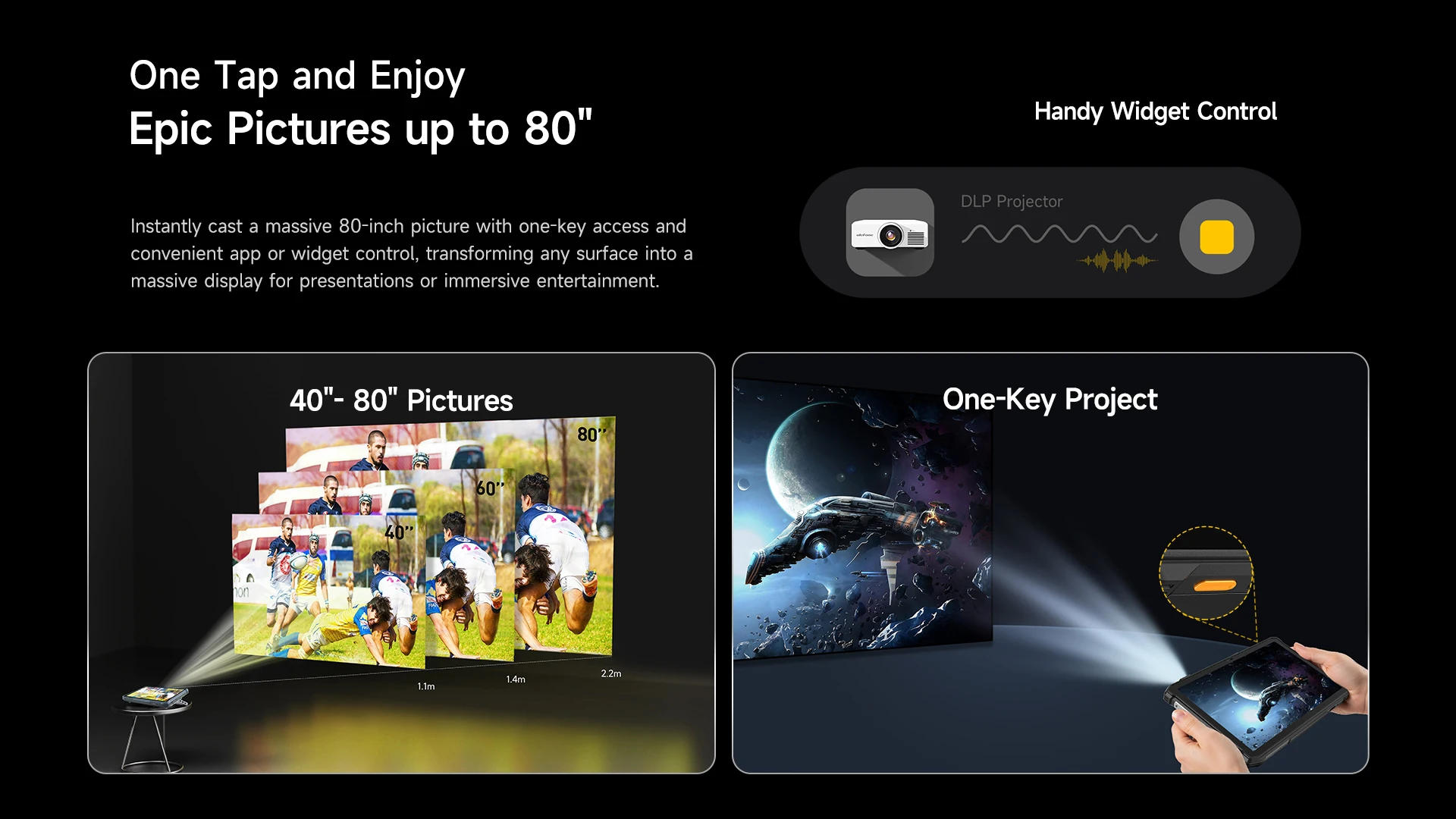 Instantly cast a massive 80-inch picture with one-key access and convenient app or widget control, transforming any surface into a massive display for presentations or immersive entertainment.