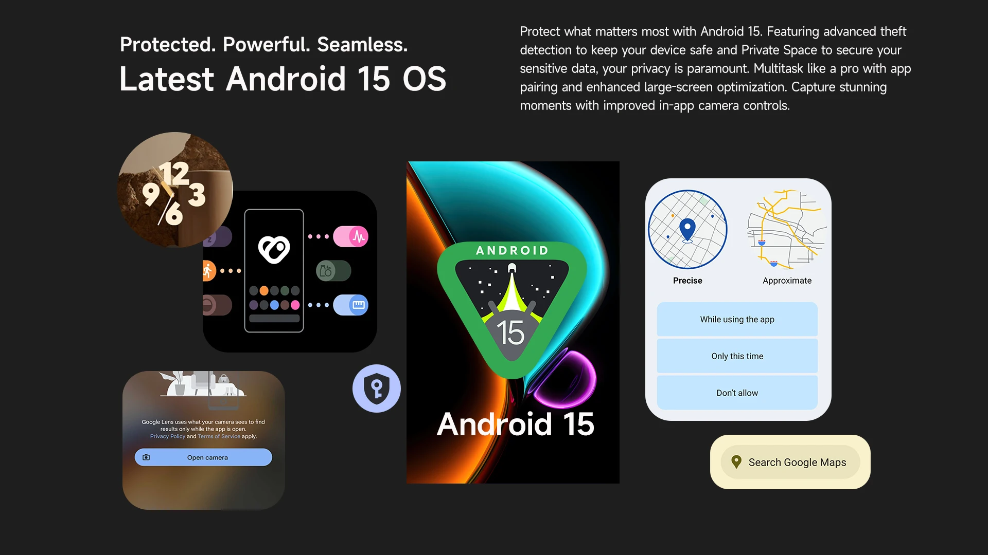Protect what matters most with Android 15. Featuring advanced theft detection to keep your device safe and Private Space to secure your sensitive data, your privacy is paramount. Multitask like a pro with app pairing and enhanced large-screen optimization. Capture stunning moments with improved in-app camera controls.