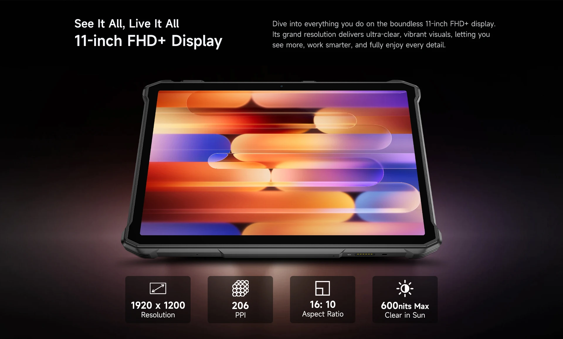 Dive into everything you do on the boundless 11-inch FHD+ display. Its grand resolution delivers ultra-clear, vibrant visuals, letting you see more, work smarter, and fully enjoy every detail.