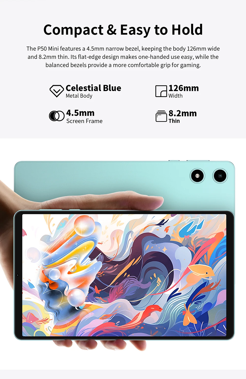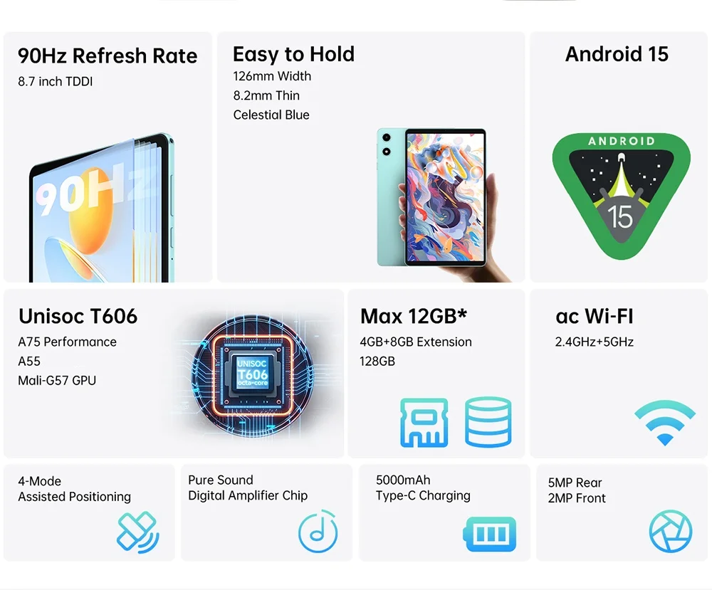 P50Mini Tablet (Unisoc T606 Octa-Core/4Gbram+128Gbrom/Android15)Tablet Case, Keyboard &Wireless Mouse Accessories Bundle