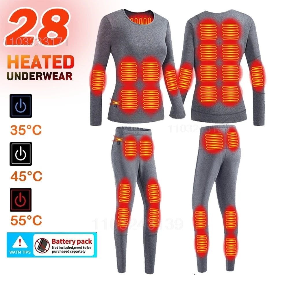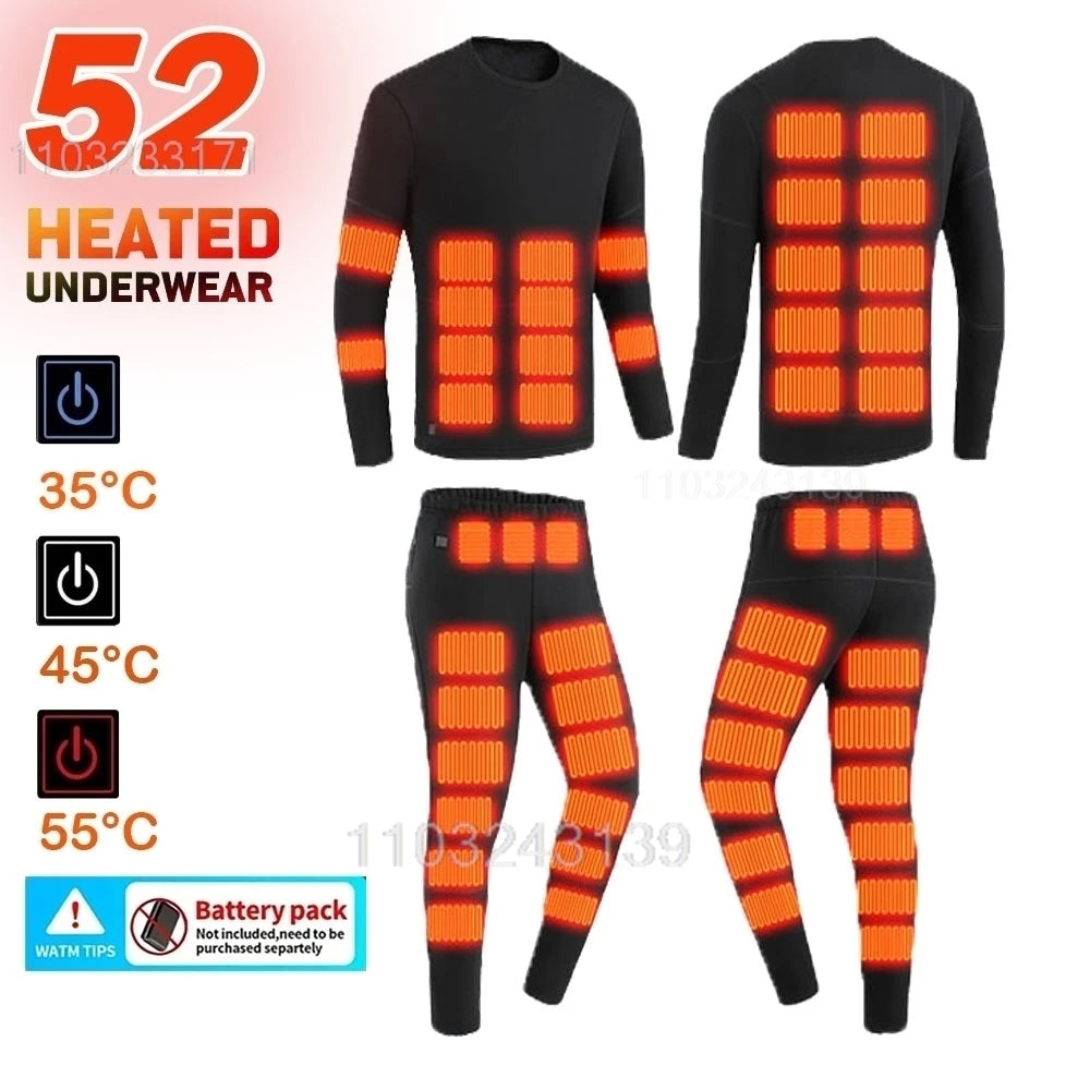 52 Areas Heated Underwear Men Winter USB Electric Heated Thermal Underwear Women'S Ski Self Heating Underwear