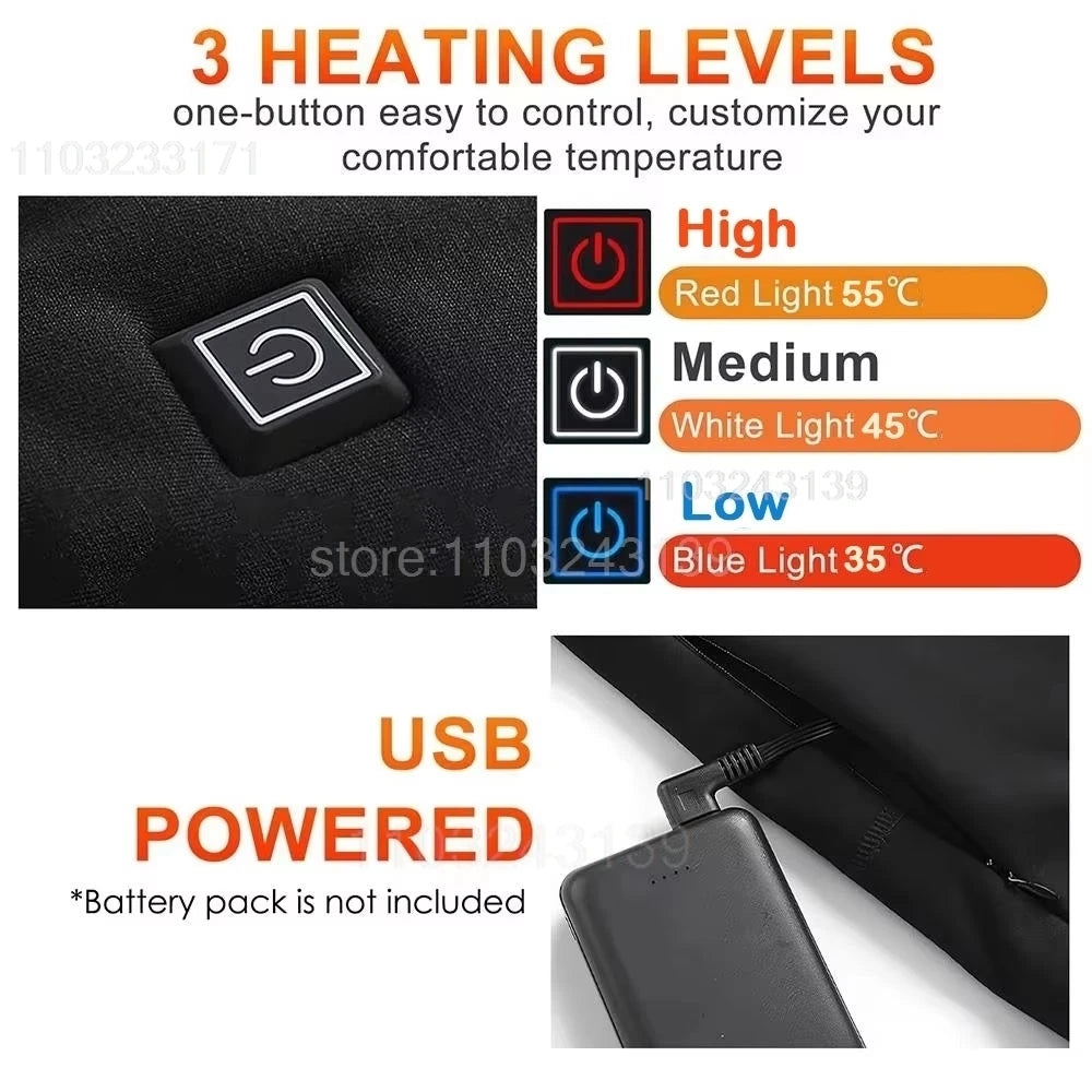 Power supply: USB power bank (not include, 10000mah power bank can be heated for about 6-7 hours)