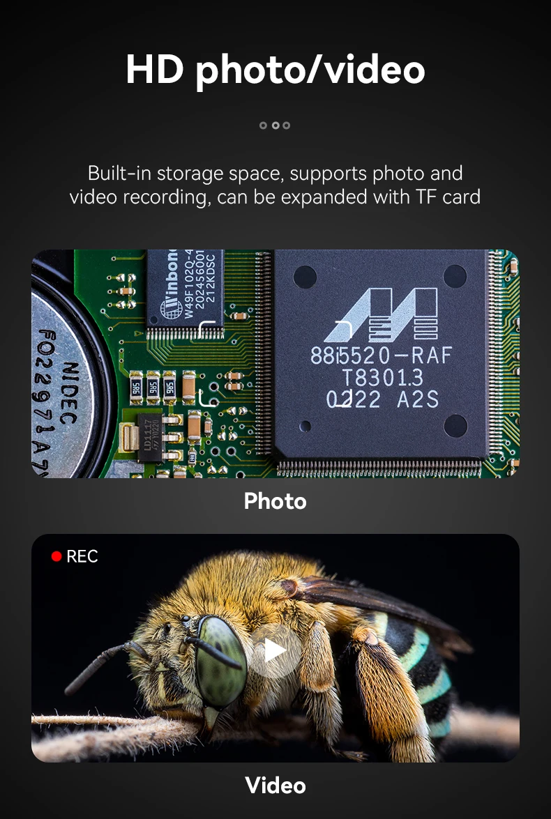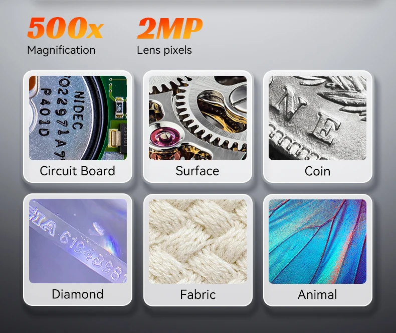 digital microscope features a high-definition 2.0-inch IPS screen with vibrant and clear colors. You can easily take photos and review them in real-time.