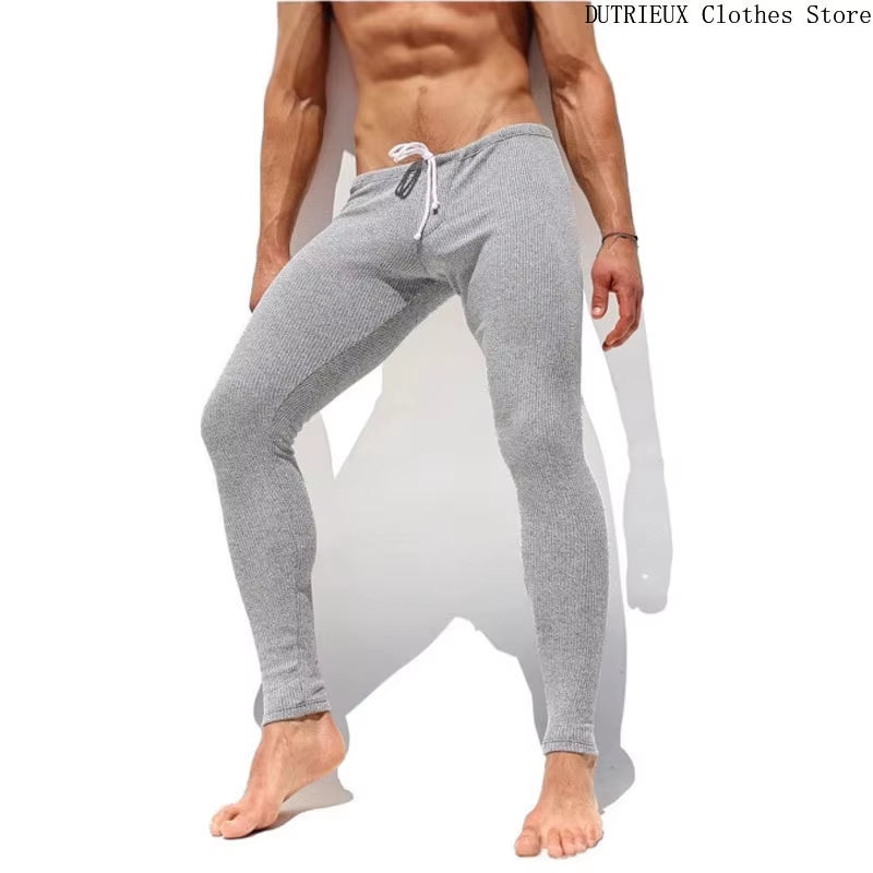 Autumn and Winter New Men'S Elastic Striped Knitted Pants Soft and Comfortable Slim Foot Pants Men'S Elastic Fitness Pants Gym