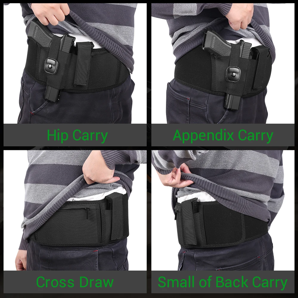 Belly Band Gun Holster Concealed Carry Waist Band Pistol Holster Pouch Magazine Holder Belt EDC Organizer for Outdoor Hunting