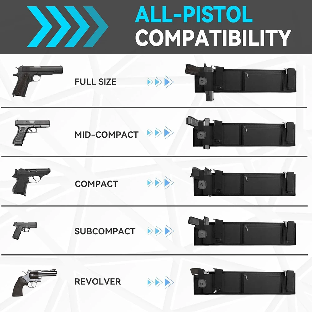- The concealed carry belly band is designed to fit any compact, mid-size, and full-size pistols and revolvers.