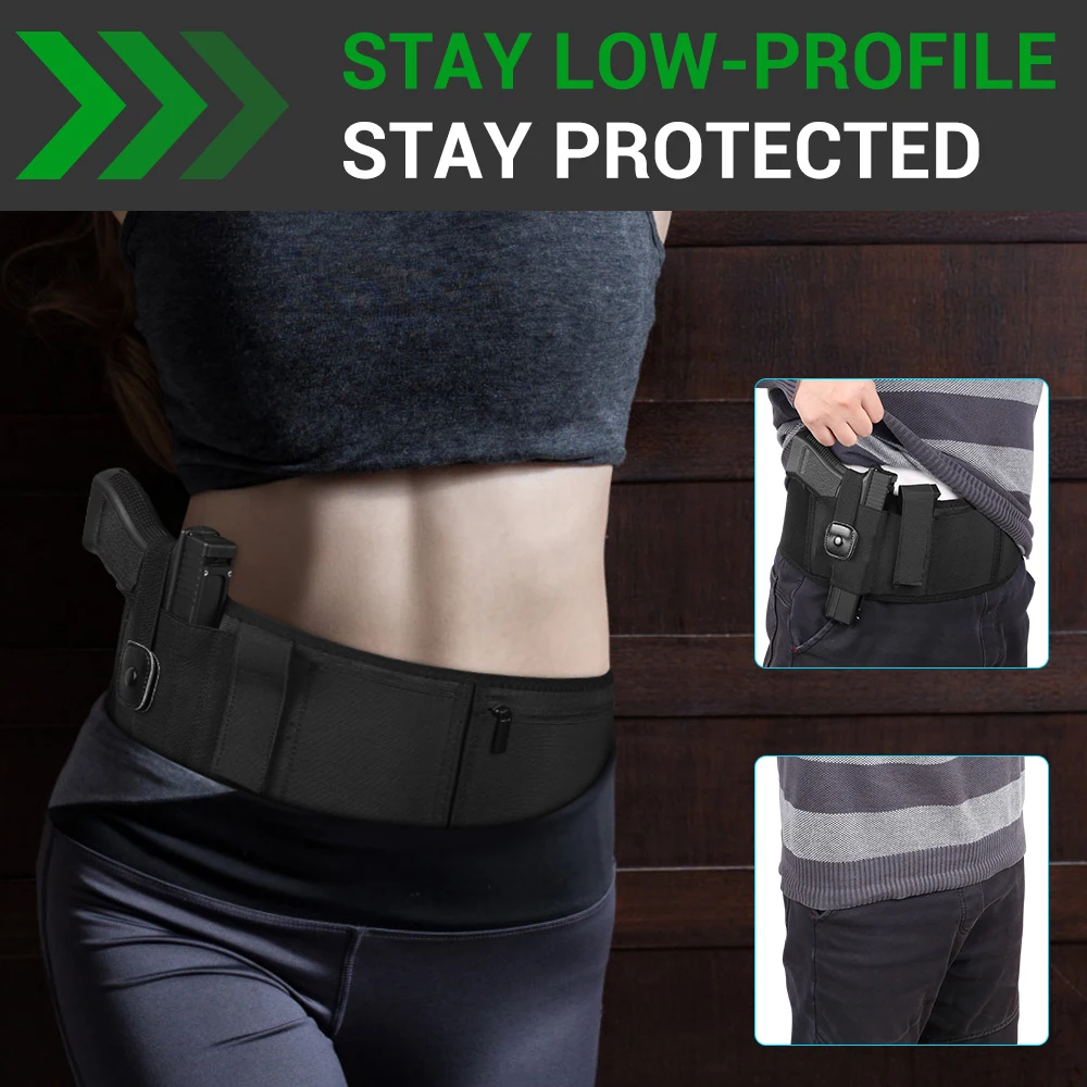 - Crafted from ultra-soft and breathable neoprene material, this belly band holster ensures all-day comfort that's gentle on your skin.