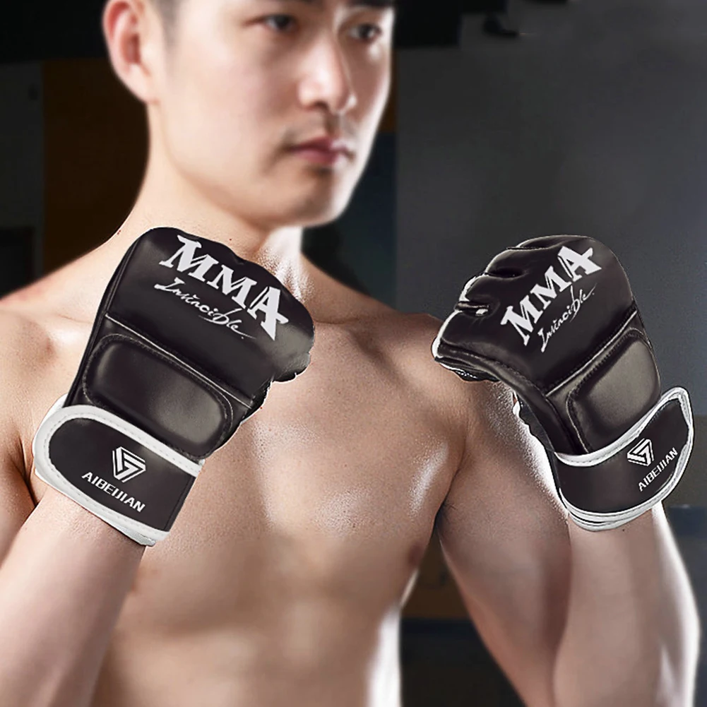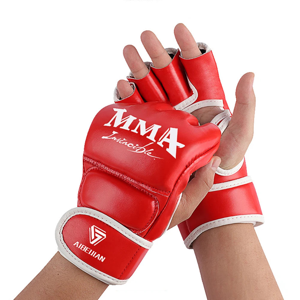 Half Finger Kickboxing Protective Gloves Wearable PU Training Sparring Gloves Tear Resistant Breathable Durable Sports Equipment
