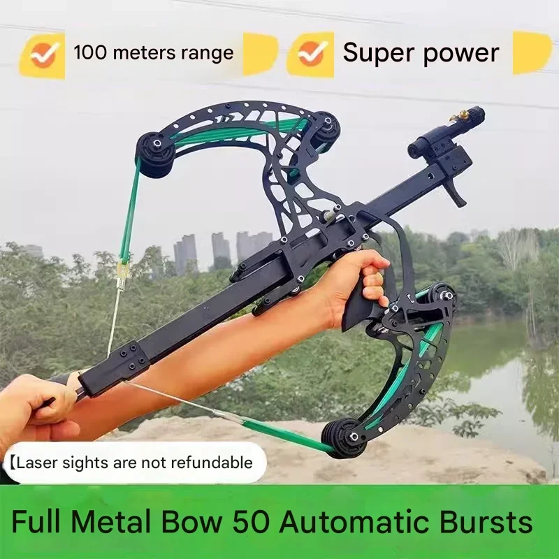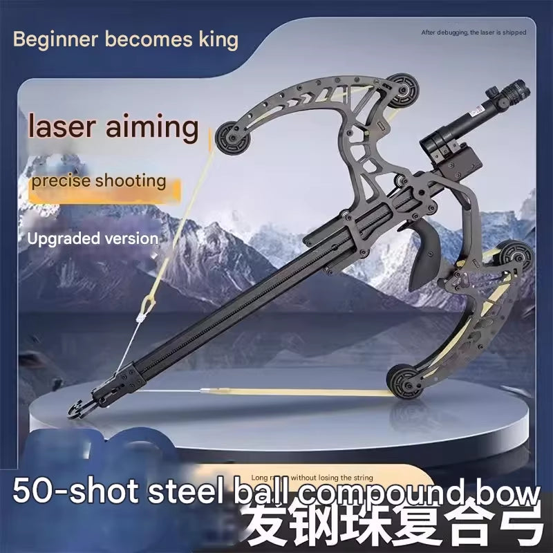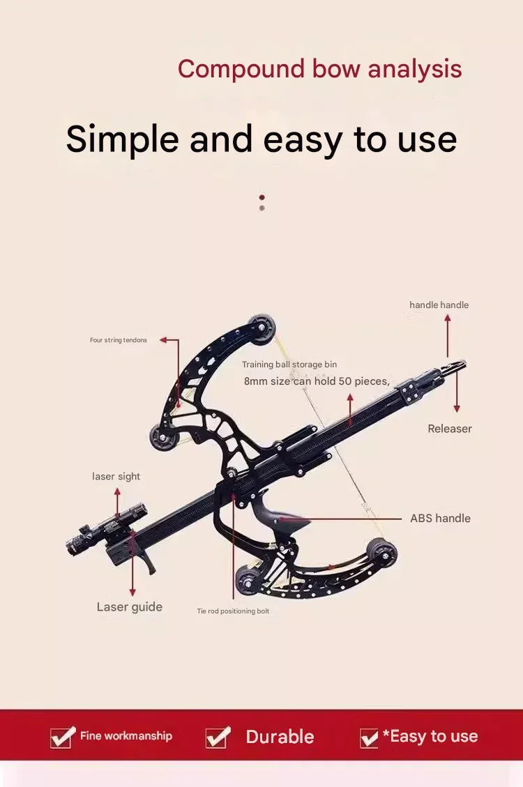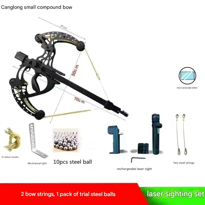 High Precision Laser Aiming Compound Bow Multi Strand Rubber Band Pulley Bow Outdoor Hunting and Shooting Slingshot Tools