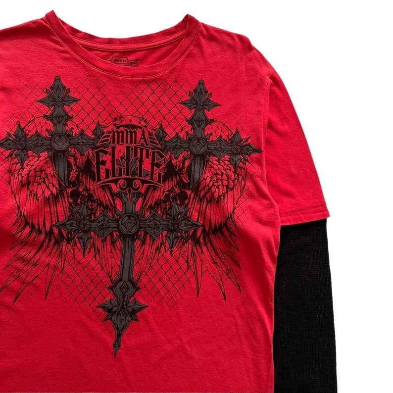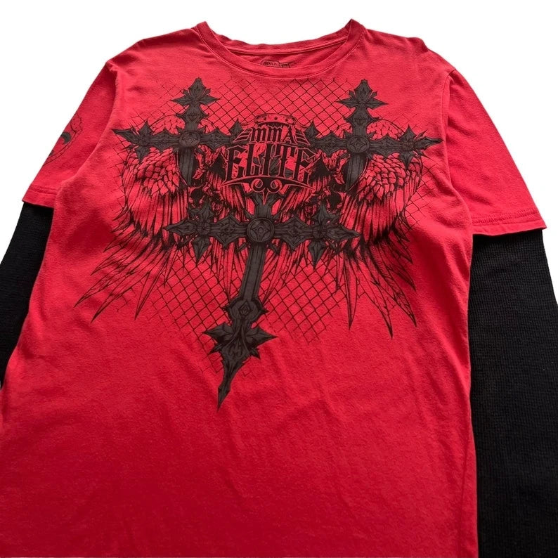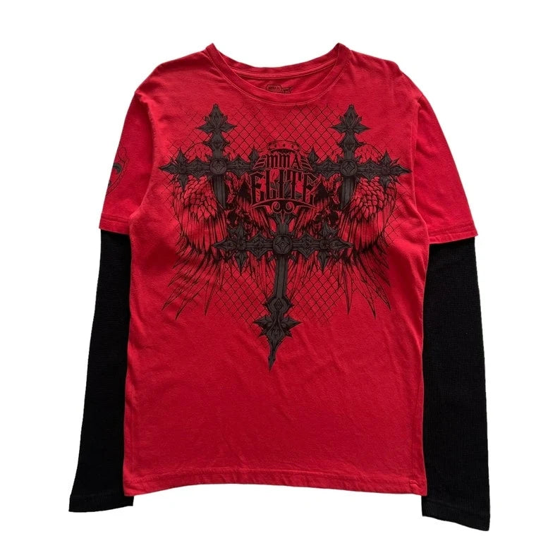 MMA Elite Cross Wing Double Layer Grunge Cyber Y2K Style Long Sleeve