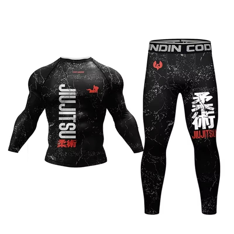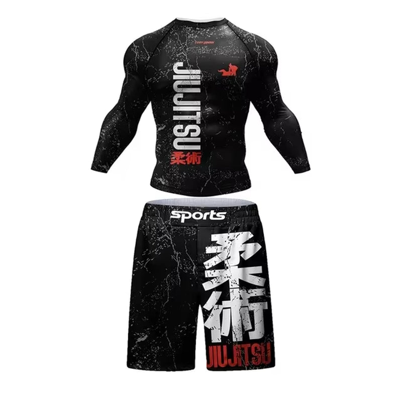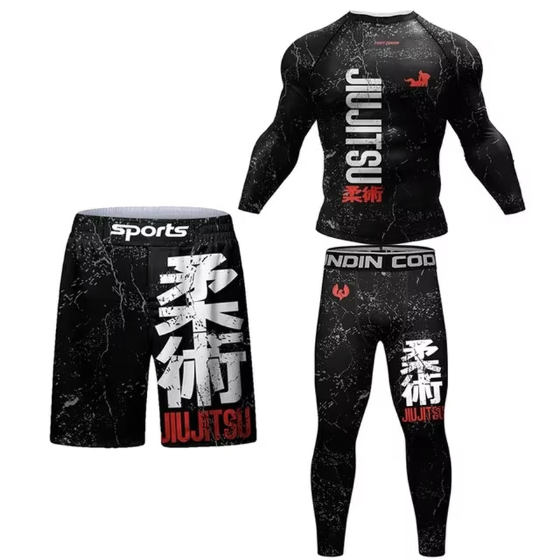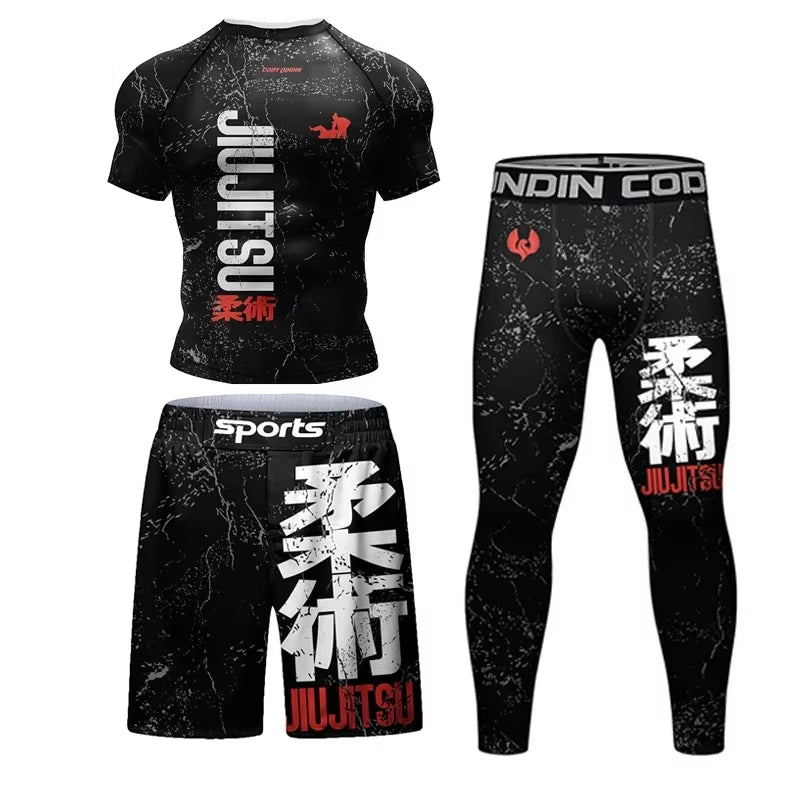 New Jiu Jitsu Rashguard MMA T-Shirt +Pants for Men 4Pcs/Set Brazilian Grappling Bjj Boxing Rash Guard Sport Clothing Gym Shorts