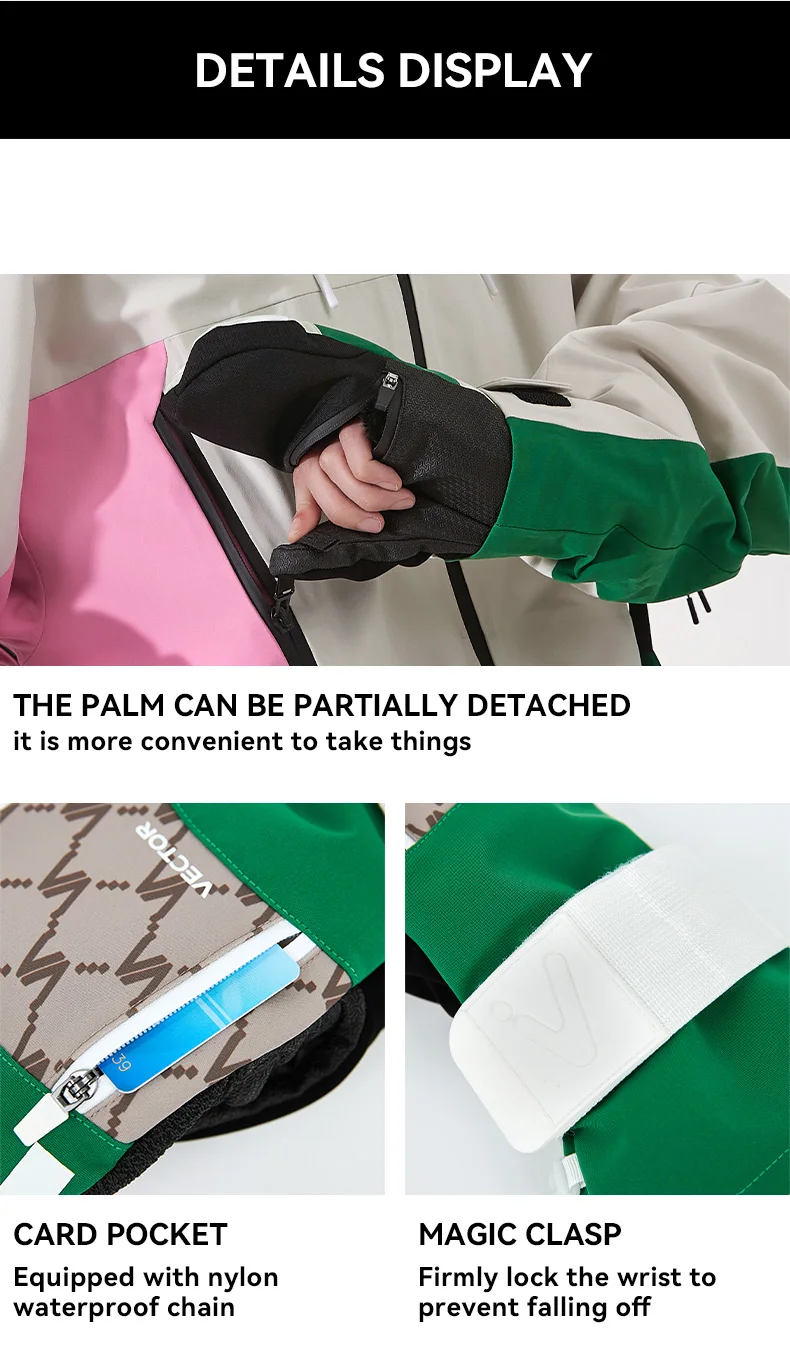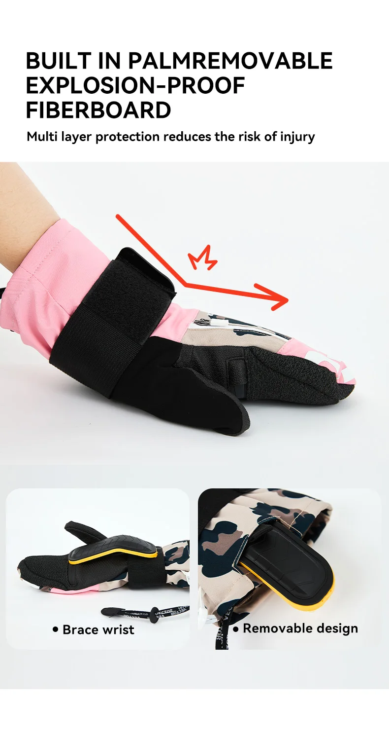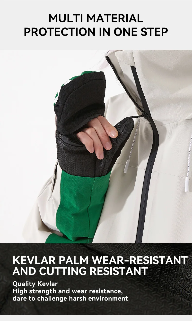 Women Men Outdoor Double Board Snowboard Kevlar Waterproof Wear-Resistant Semi Detachable Gloves 3M Cotton