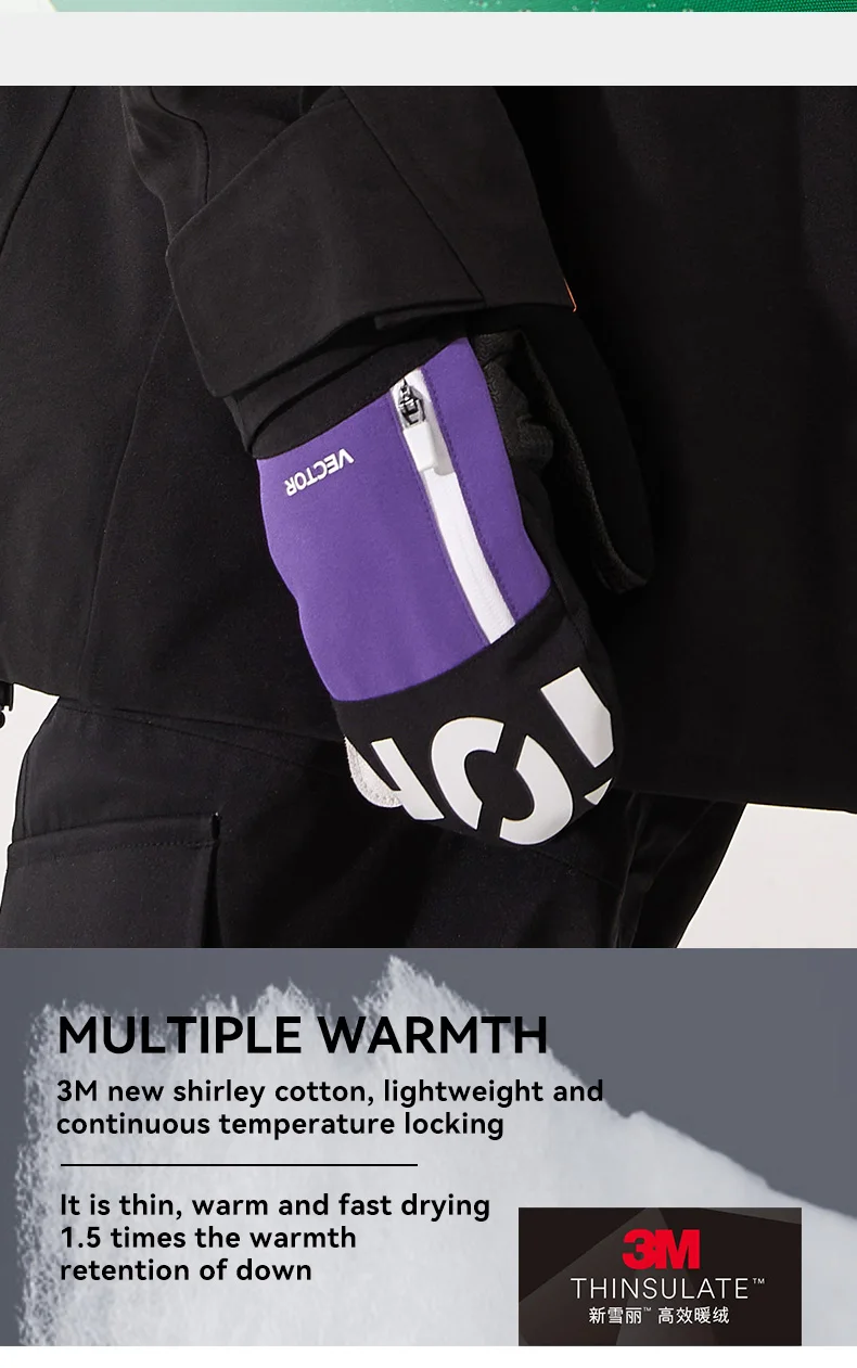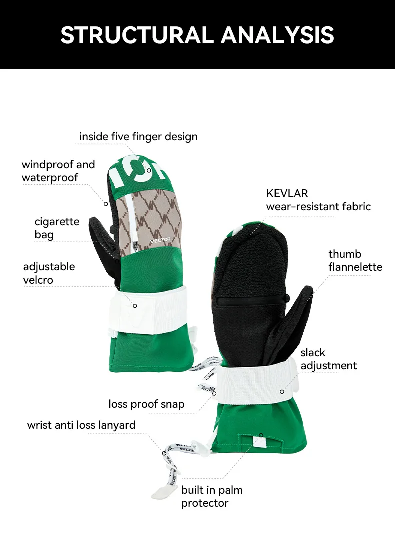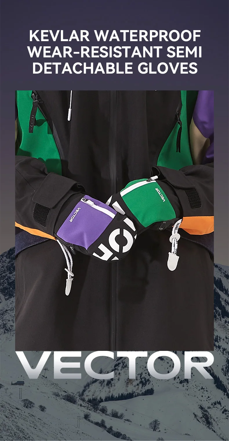 Women Men Outdoor Double Board Snowboard Kevlar Waterproof Wear-Resistant Semi Detachable Gloves 3M Cotton