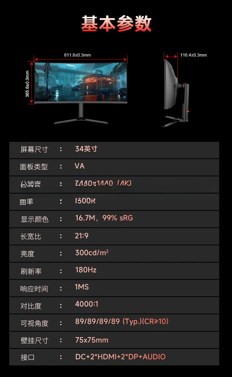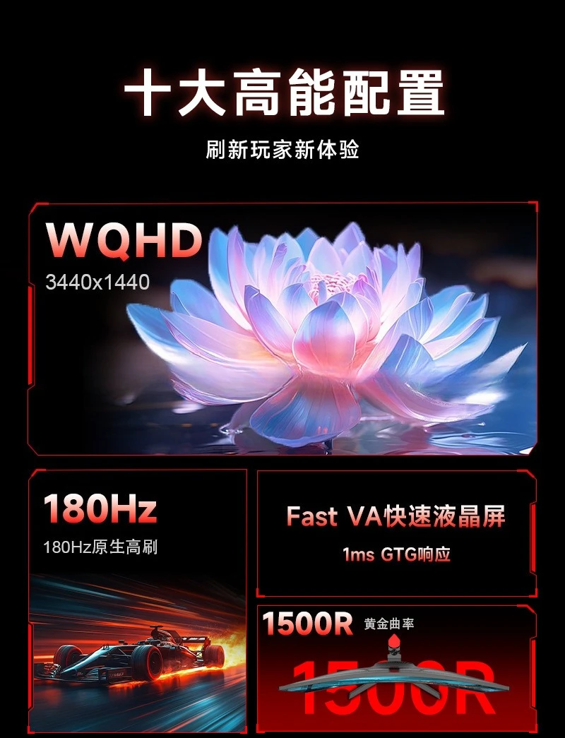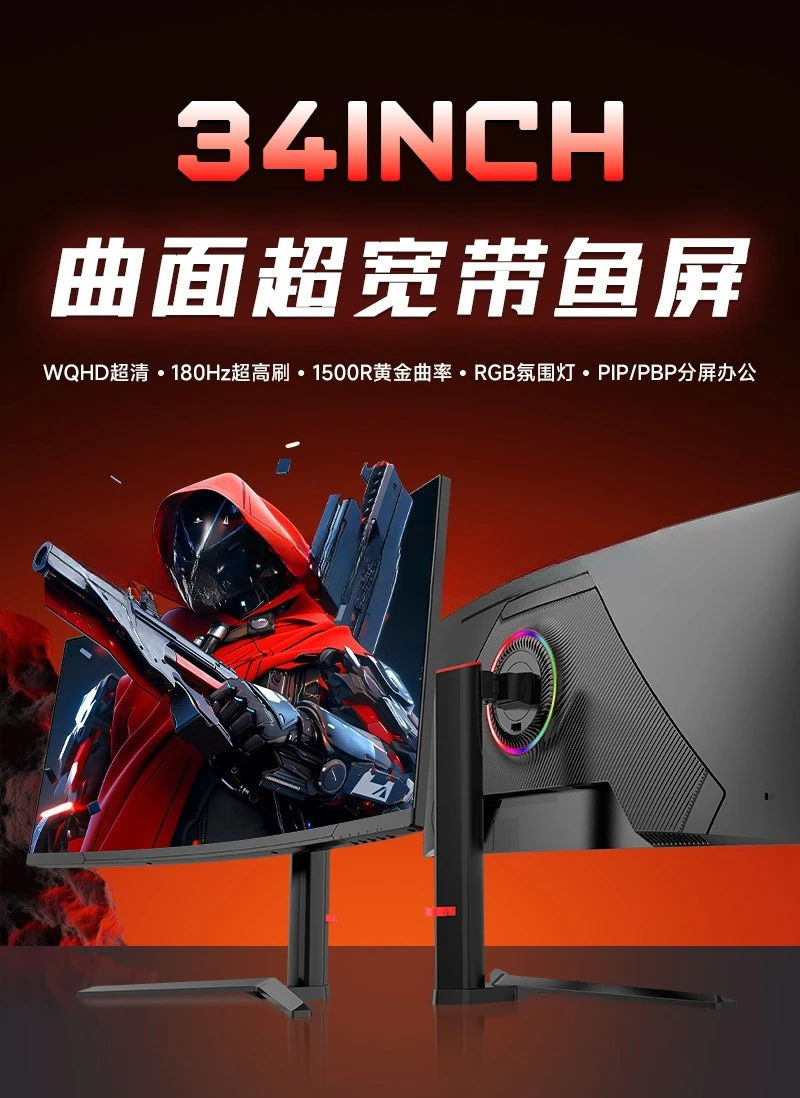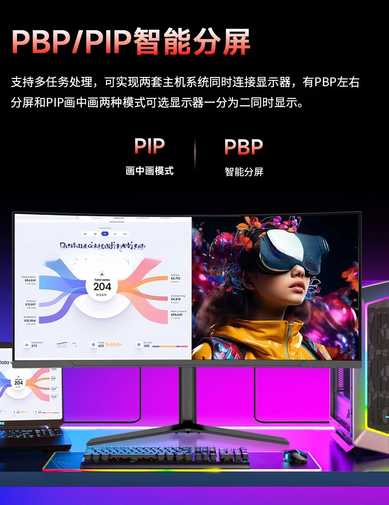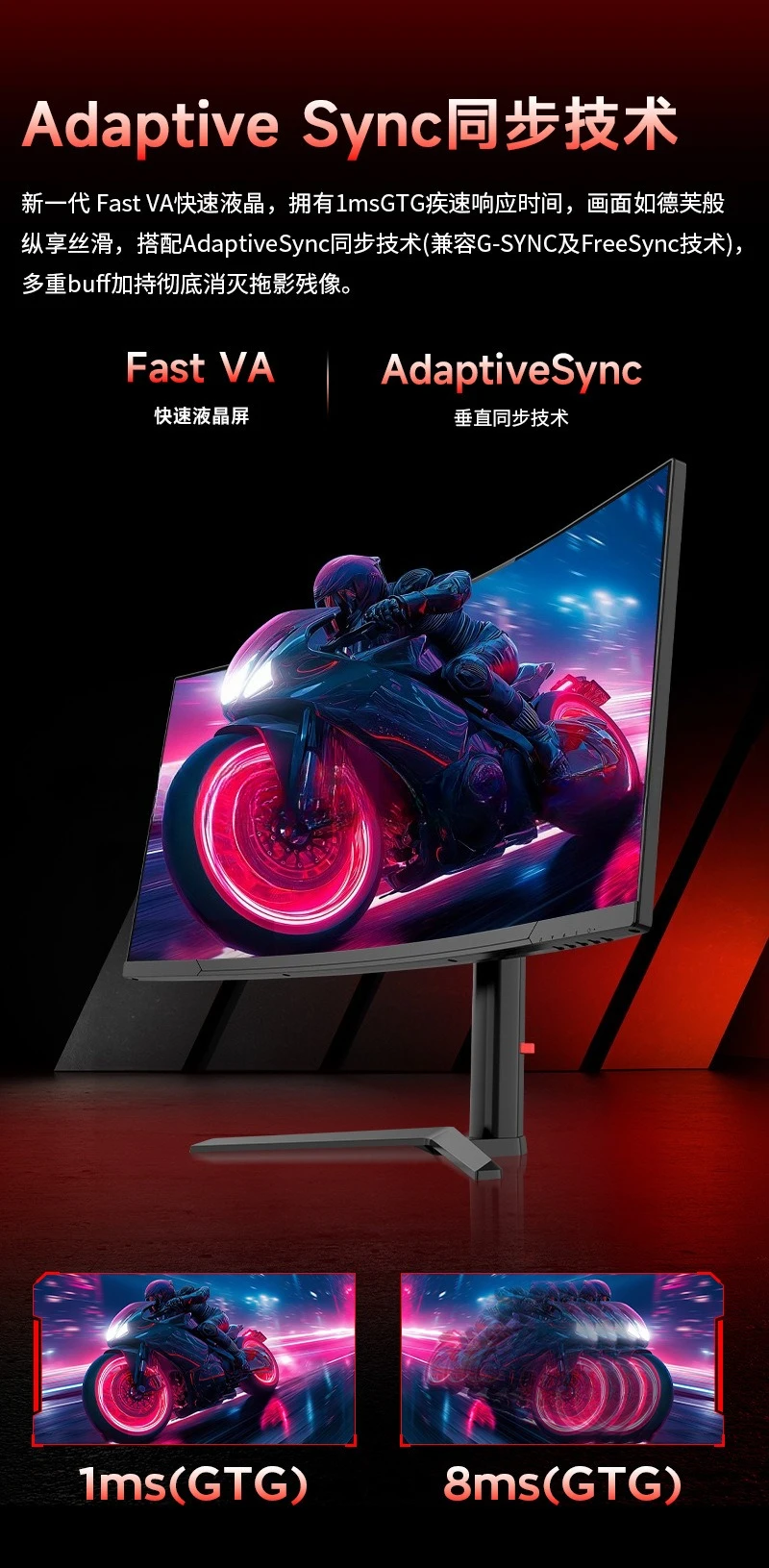24/27/32/34 Inch Curved Monitor | 1K/2K/4K | Height-Adjustable + Backlit | Up to 280Hz HDR400