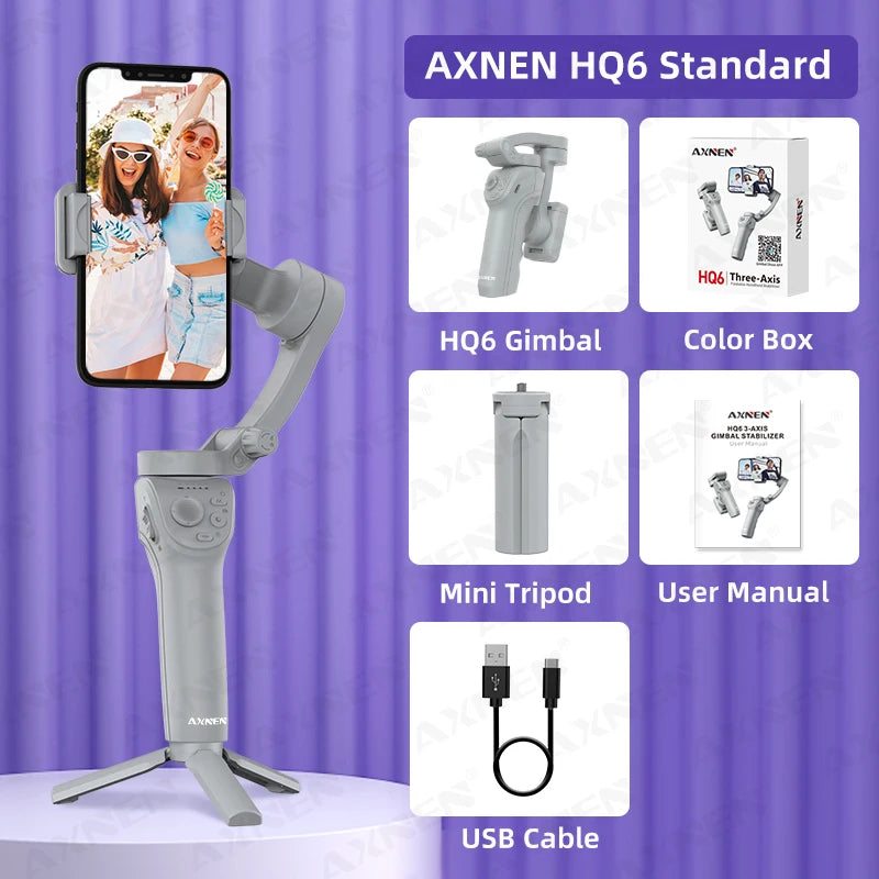 "AXNEN HQ6 Standard" : AXNEN HQ6 Gimbal + USB Cable + User Manual + Mini Tripod + Color Box