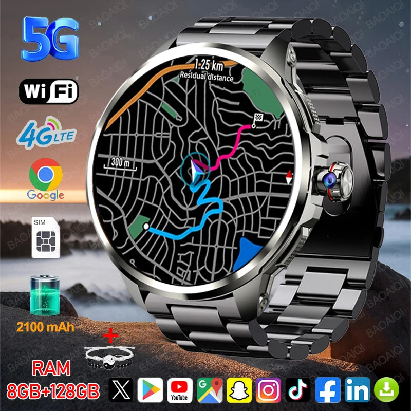 5G Full Network Smart Watch 1.95 Inch 720*720 Big Screen HD Video Call 8GB+128GB RAM 5G Smartwatch Google Play WIFI GPS Sim Card