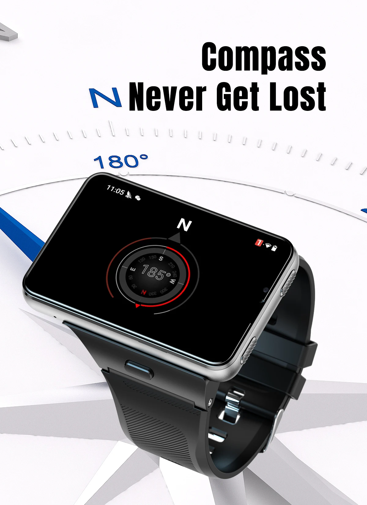 This smart watch is simple and elegant, supports SIM card, 4G LTE network, WiFi, BT 5.0 wireless connection and 2.88 inch touch screen, a variety of sports functions, supports heart rate monitoring, suitable for men and wome