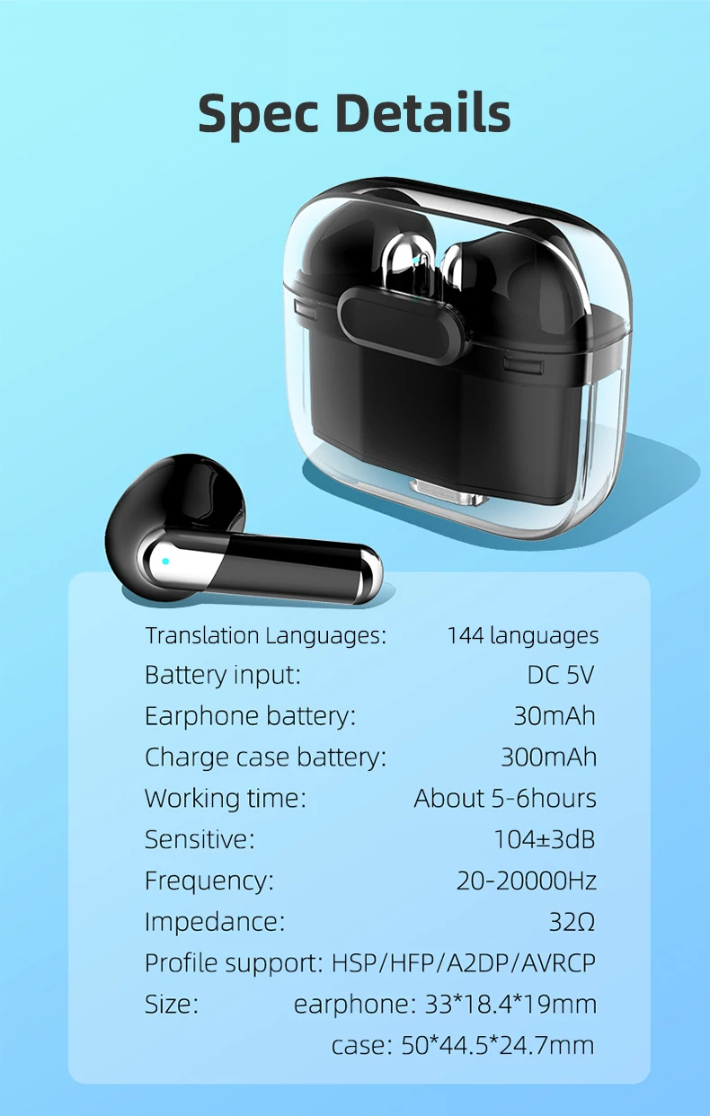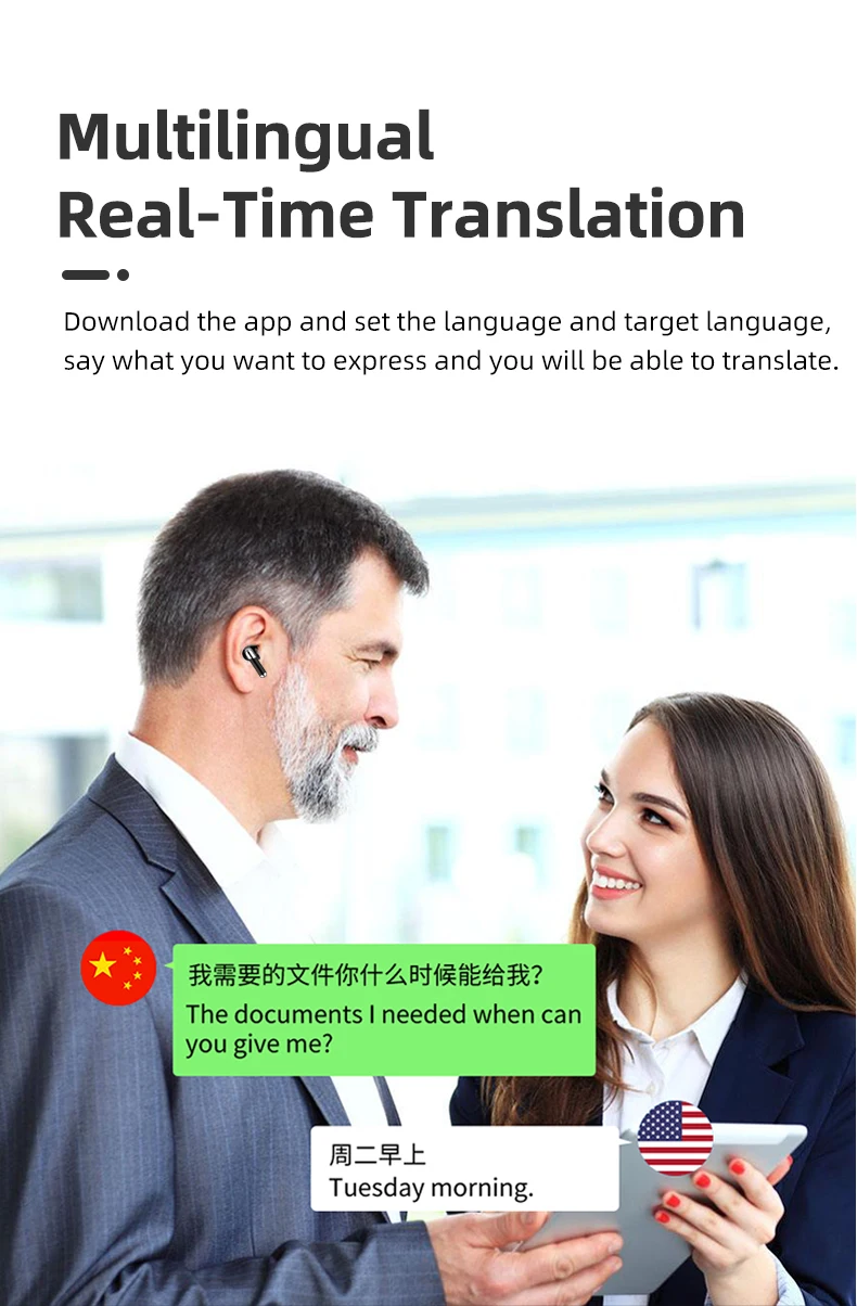 Bluetooth5.3 Voice Translation Headphone Wireless 144 Language Instant Translate Real Time Translator Earphone for IOS Android
