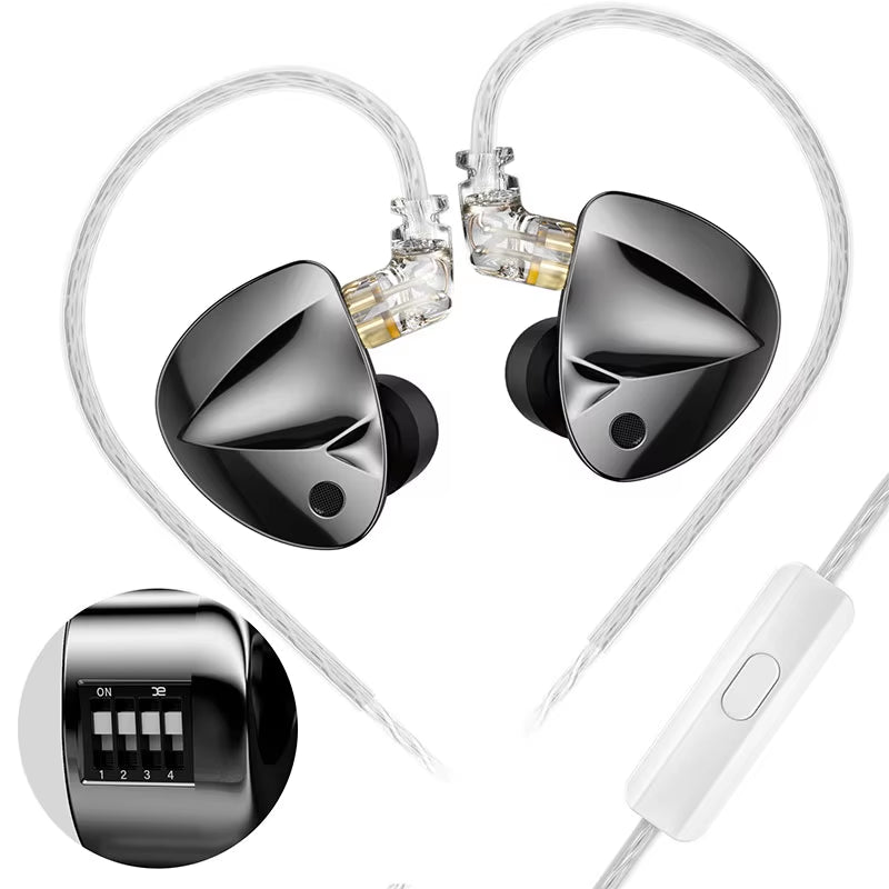 • 4-Level Tuning Switch :The earphones feature a 4-level tuning switch, allowing you to customize your audio output to suit your personal preference and enhance your listening experience.