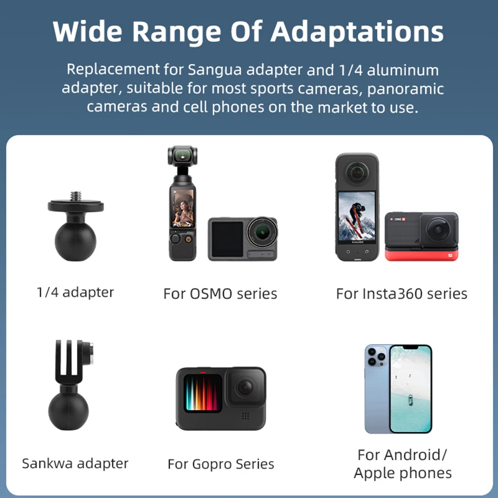 6. With two kinds of adapters, three melon adapter and 1/4 adapter; compatible with most of the sports cameras on the market, allowing more creative possibilities,