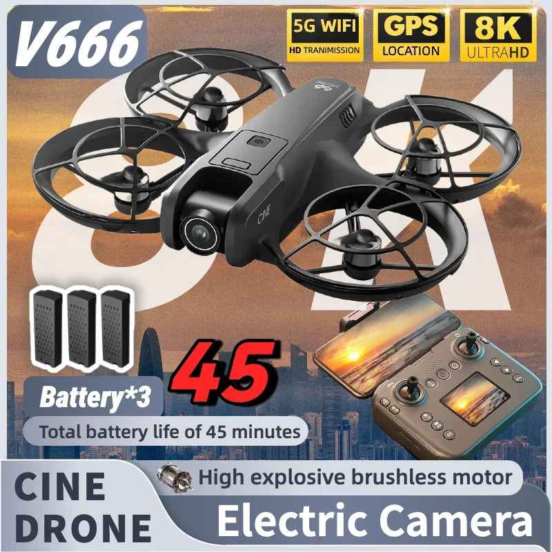 For Xiaomi V666 MINI Drone 8K Professional WIFI 5G Dron Obstacle Avoidance Brushless Altitude Headless Mode RC Quadcopter Toys