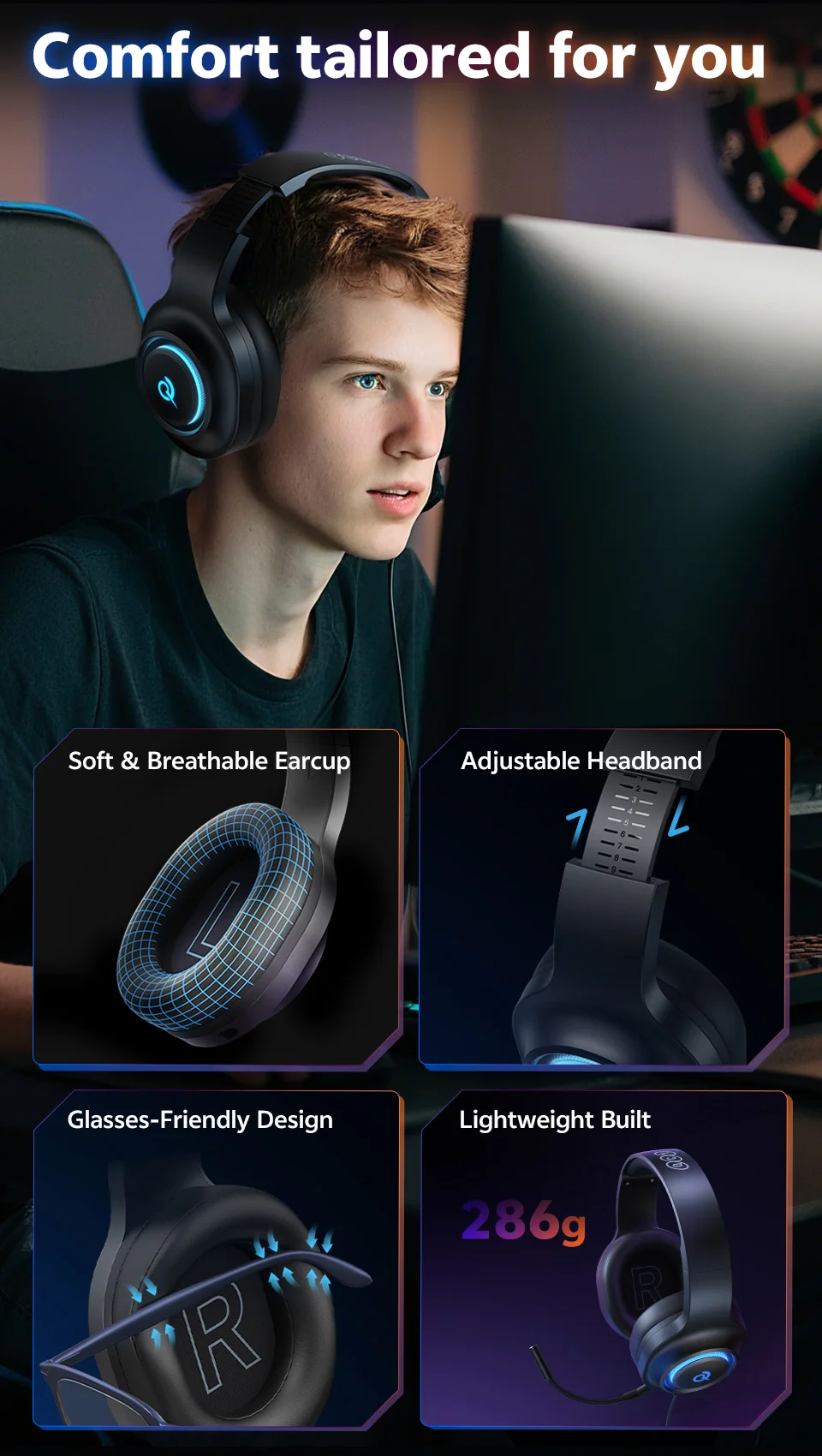 286g Lightweight Design – Comfortable for long sessions