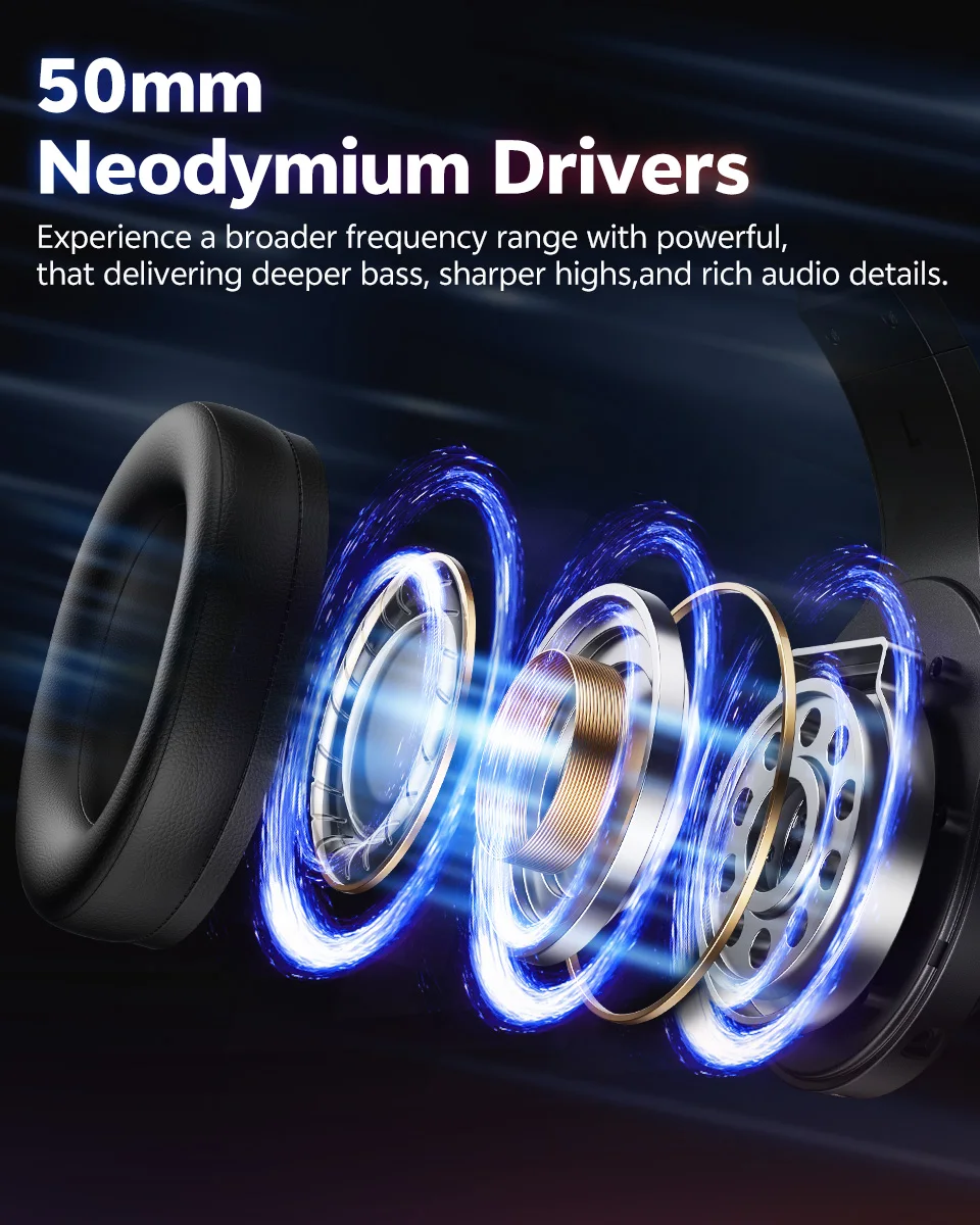 50mm Neodymium Driver – Deep bass & powerful sound