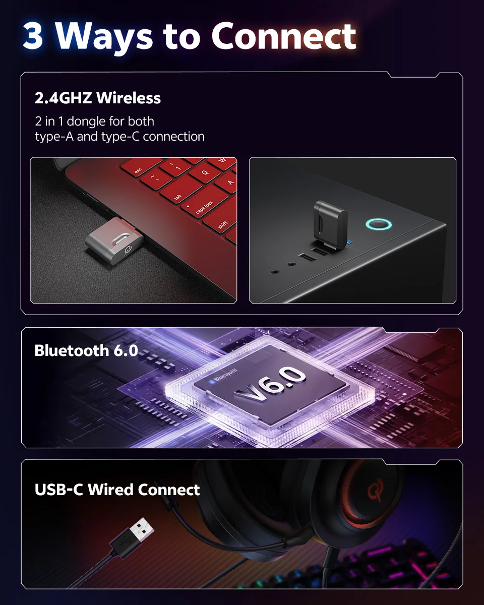 3 Connection Modes – Bluetooth 6.0 / 2.4GHz / USB-C