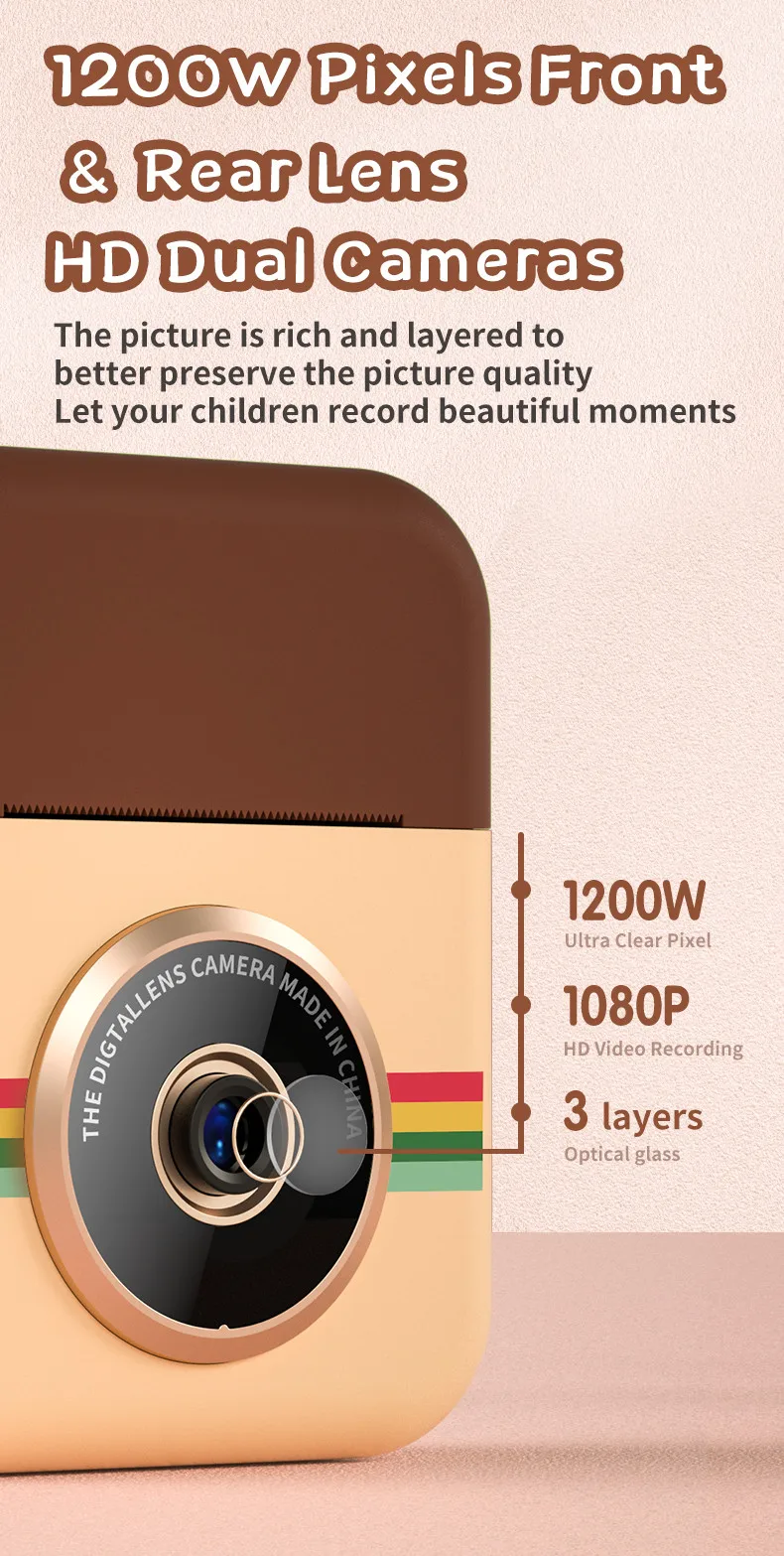 Kids Children Instant Digital Print Camera With Thermal Photo Paper Toys Camera 1080P 2.4in For Christmas Birthday Gift Girl Boy