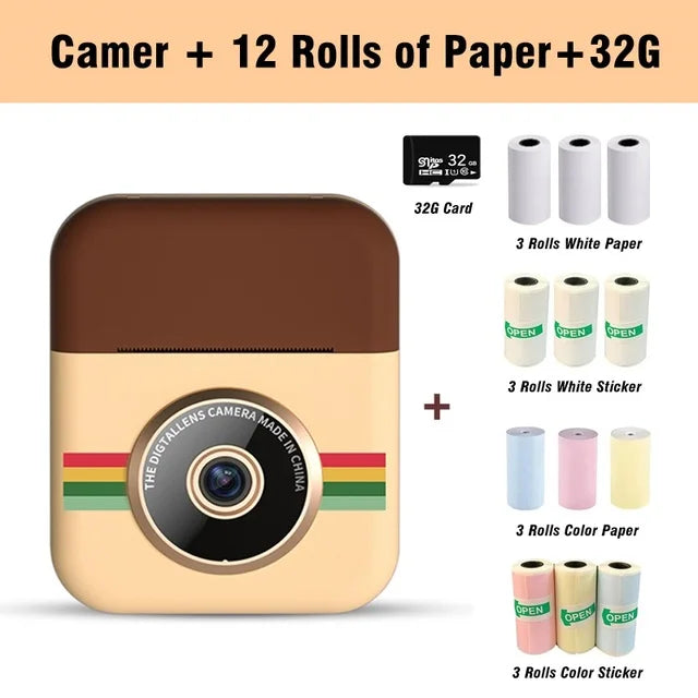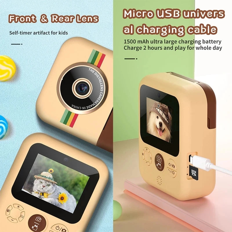 Kids Toy Instant Printing Camera Mini Digital Camera with HD Video Recording Dual Lens Thermal Photo Paper Birthday Boys Girls