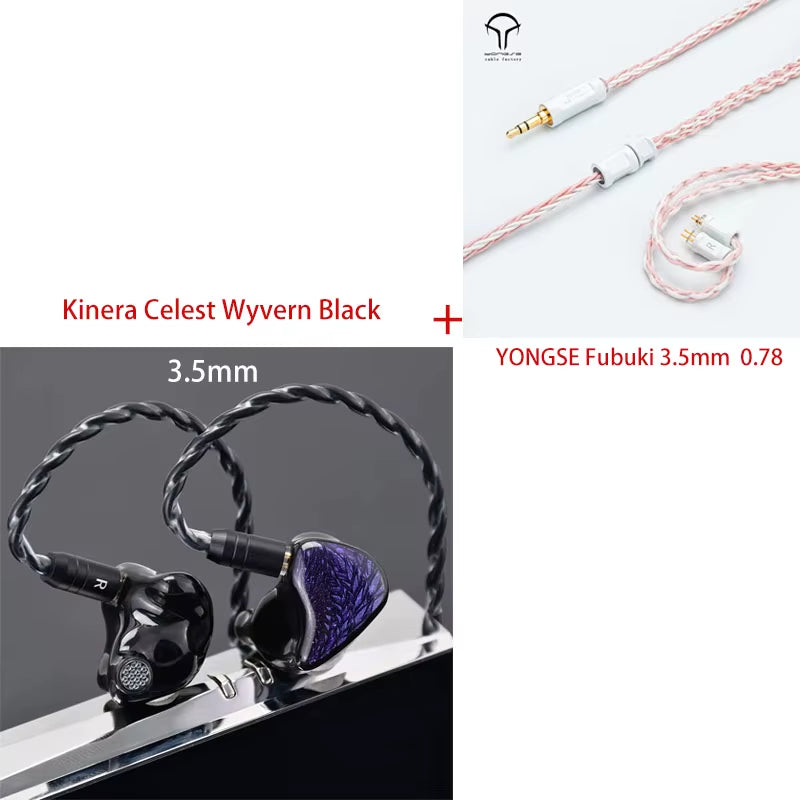 Kinera Celest Wyvern Black Dragon In-Ear Hifi Earphones 10Mm LCP Dynamic Driver Music Earbuds with Detachable 2-Pin 3.5Mm Cable