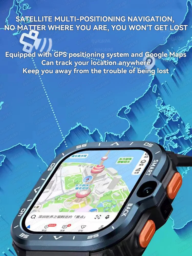 New 2.03 Inch 4G Network Smart Watch GPS Wifi SIM NFC Dual Camera Rugged 16G 64G ROM Storage Google Play IP68 Android Bracelet