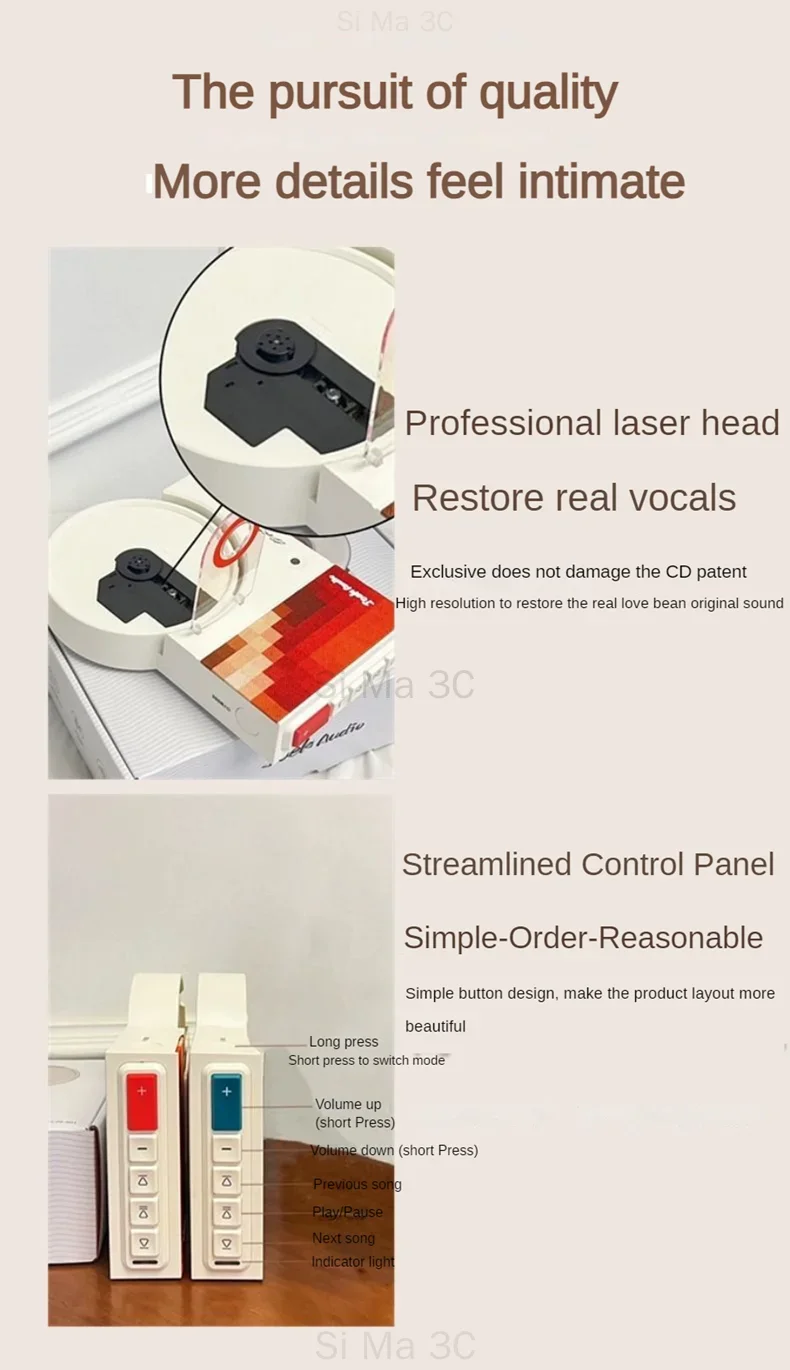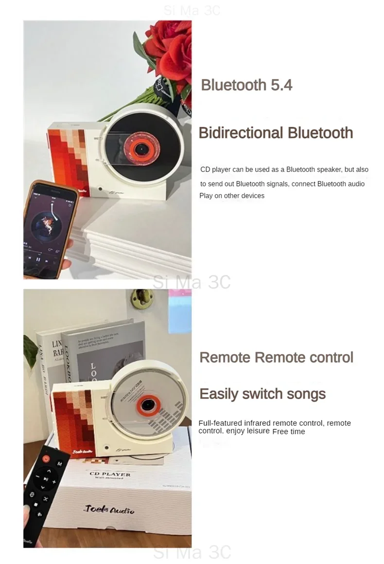 NEW Portable Retro CD Player 4000Mah Bluetooth Hi-Fi Sound Speakers Wall Mountable & Desktop CD Music Player with Remote Control