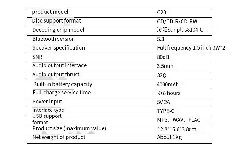 Speaker specifications: full frequency 1.5 inch 3W*2