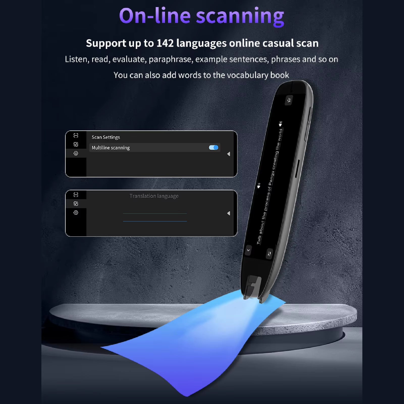 1. Text to Voice: The translation pen can scan 5000 characters per minute, scan and translate entire lines of text, voice output of original and translated text, with an accuracy rate of up to 98%; Suitable for business work, student learning, and reading; Contains vocabulary from primary school, middle school, high school, IELTS, TOEFL, SAT, GRE, etc2. Multiple Languages: The voice translator supports 142 languages online scanning translation and real time voice translation, 10 languages offline translation; Supporting multiple languages and voice output speed adjustment, it is a nice choice for you to take notes, record meetings, travel abroad, take exams, and giving (requires WiFi connection)