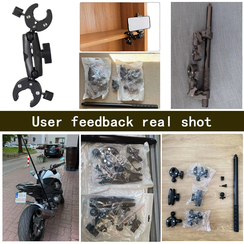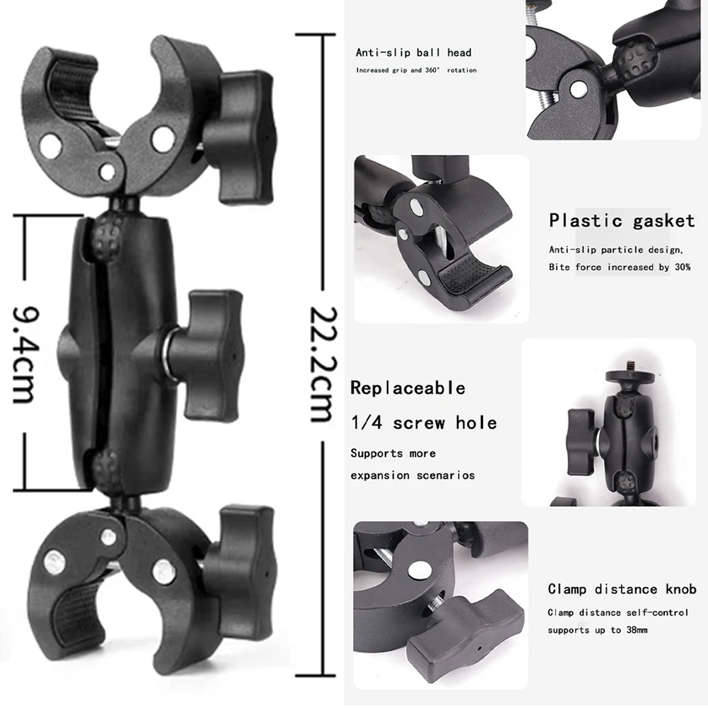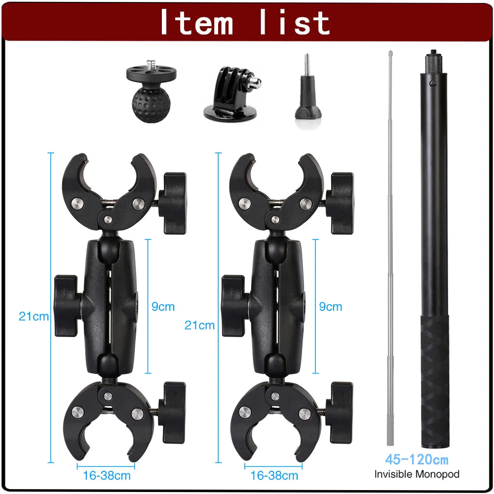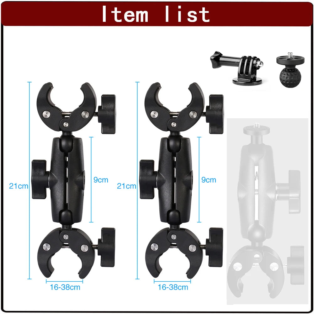 【Double Head Clamp Kit】The Double Head Clamp Kit offers dual support for your action camera, ensuring stability during adventurous rides.