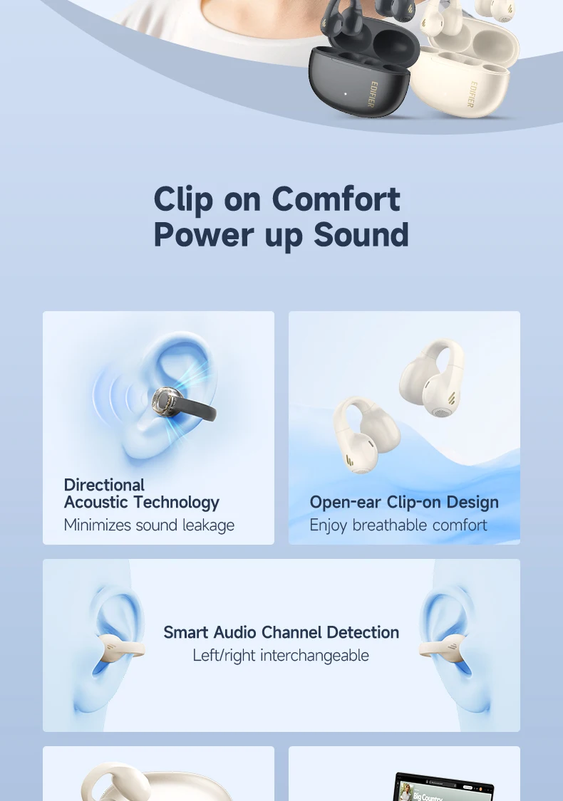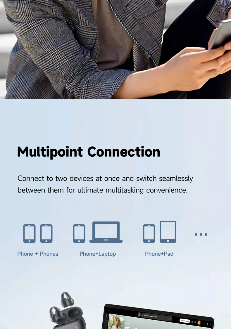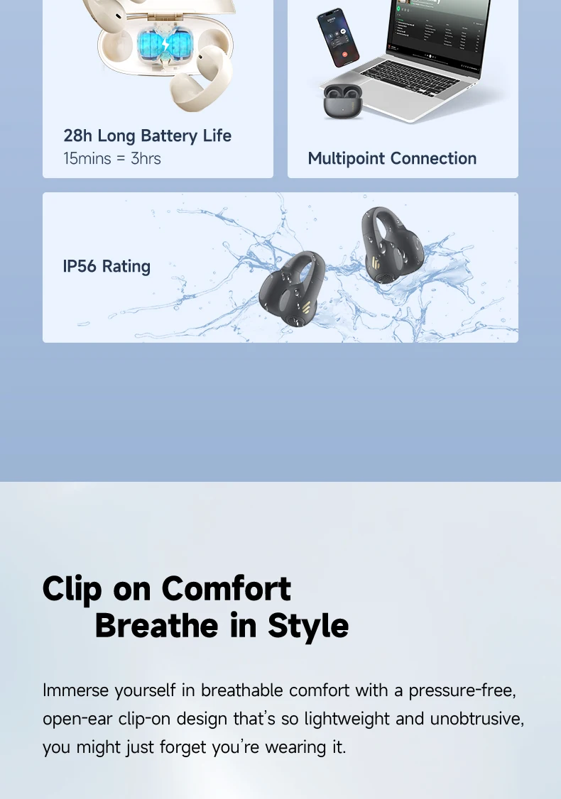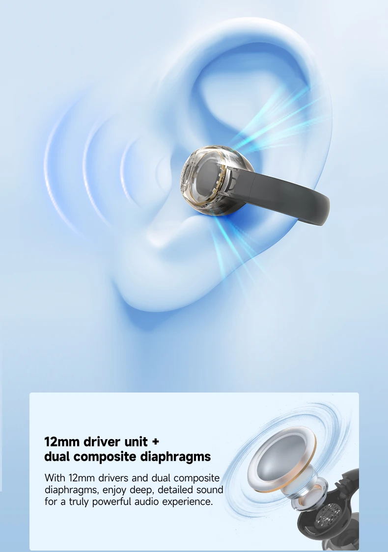 R1 Ear Clip Bluetooth Earphones Open Ear Headphones TWS True Wireless Earbuds with Microphone Clear Call 28Hrs Playtime
