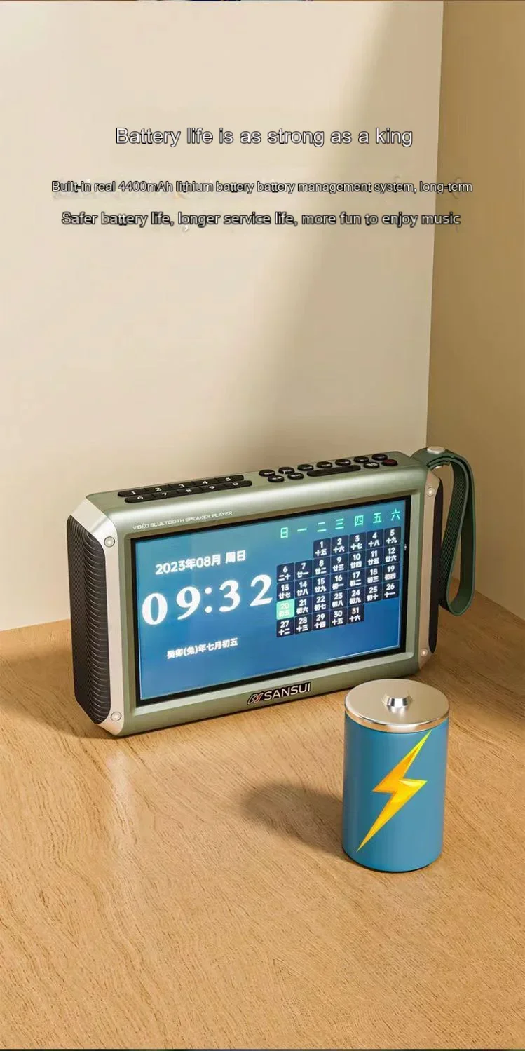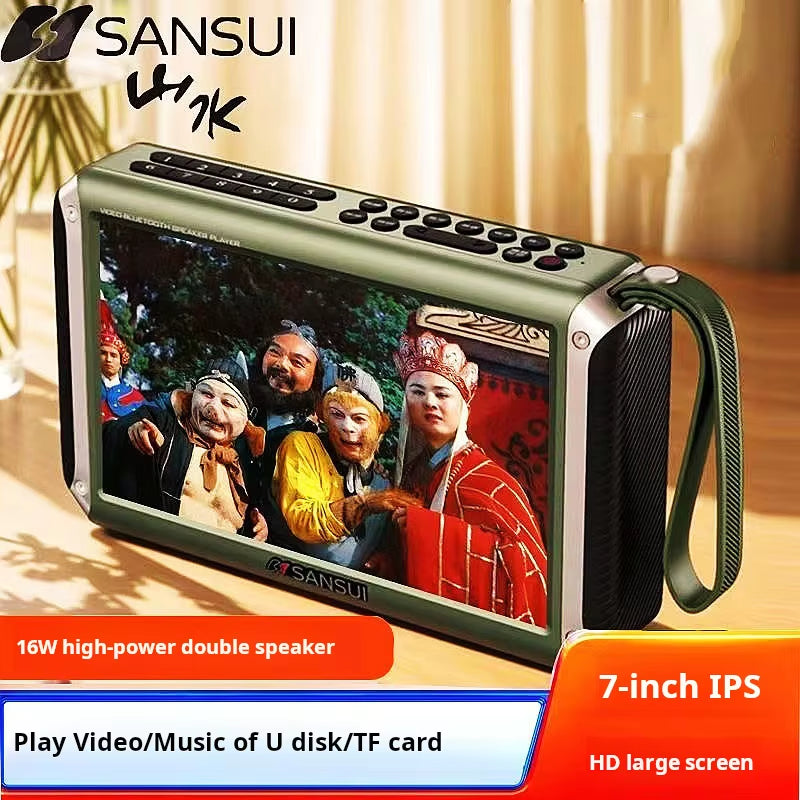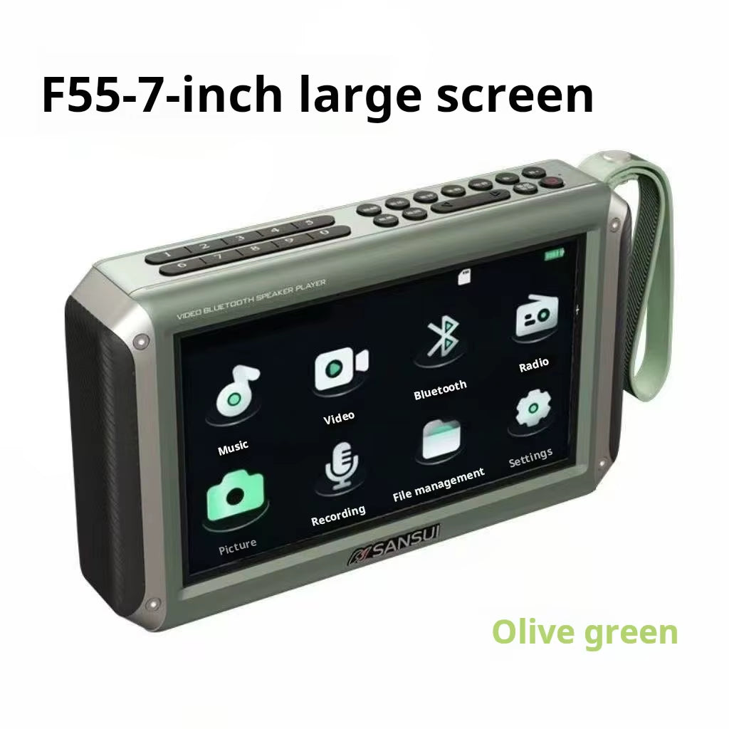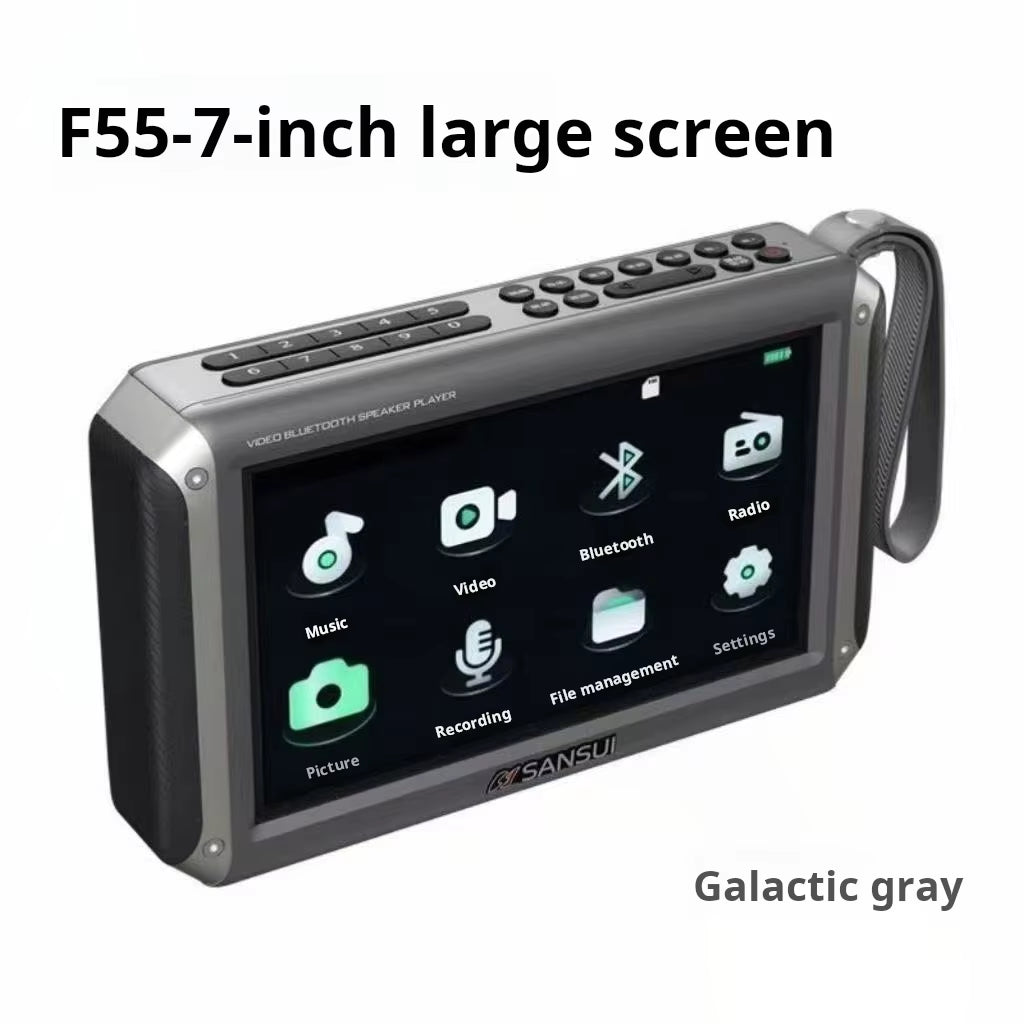 SANSUI F55 7-inch LED screen FM radio MP4 video player stereo subwoofer Bluetooth speaker recorder TF USB video speaker