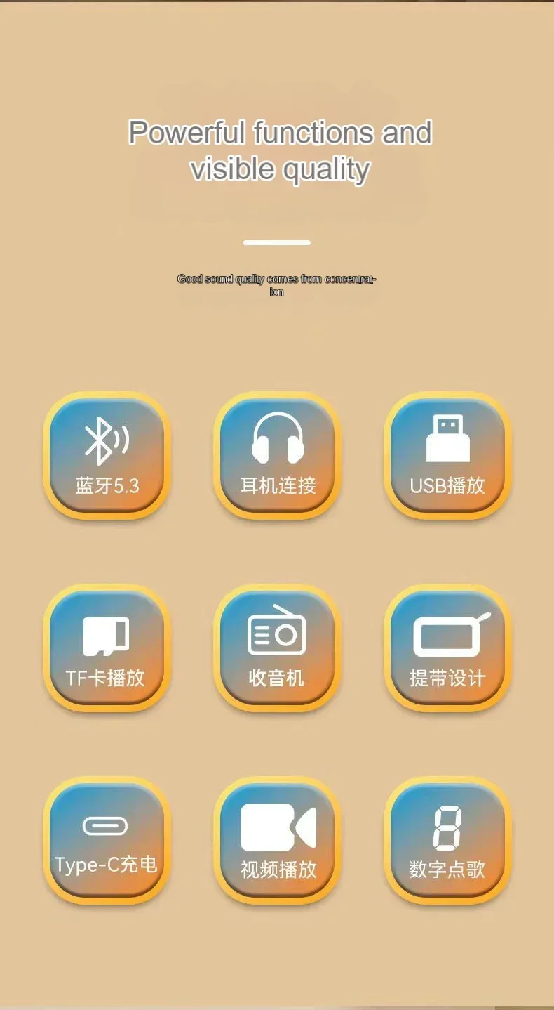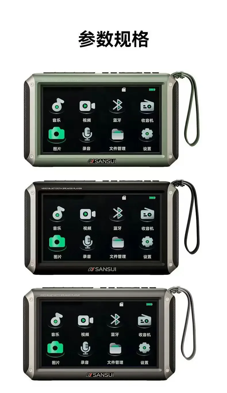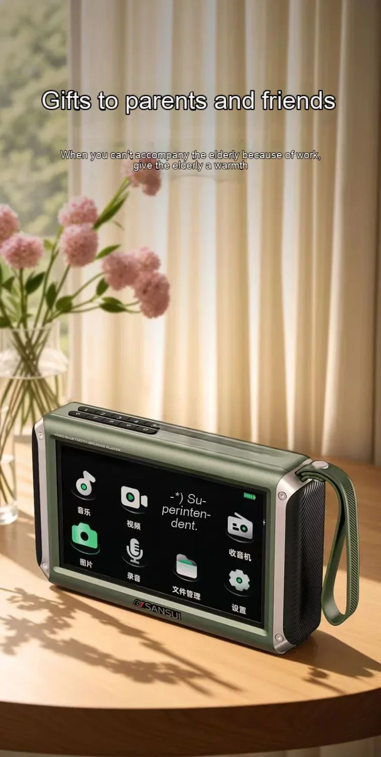 SANSUI F55 7-inch LED screen FM radio MP4 video player stereo subwoofer Bluetooth speaker recorder TF USB video speaker