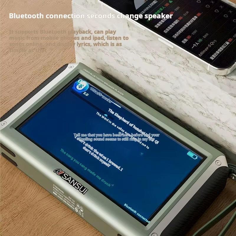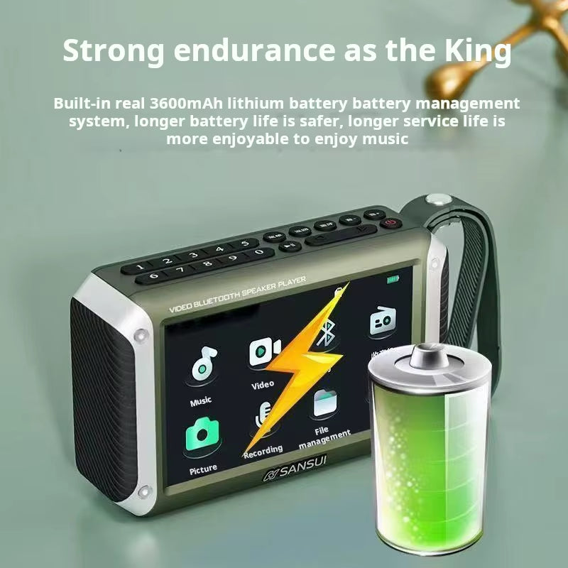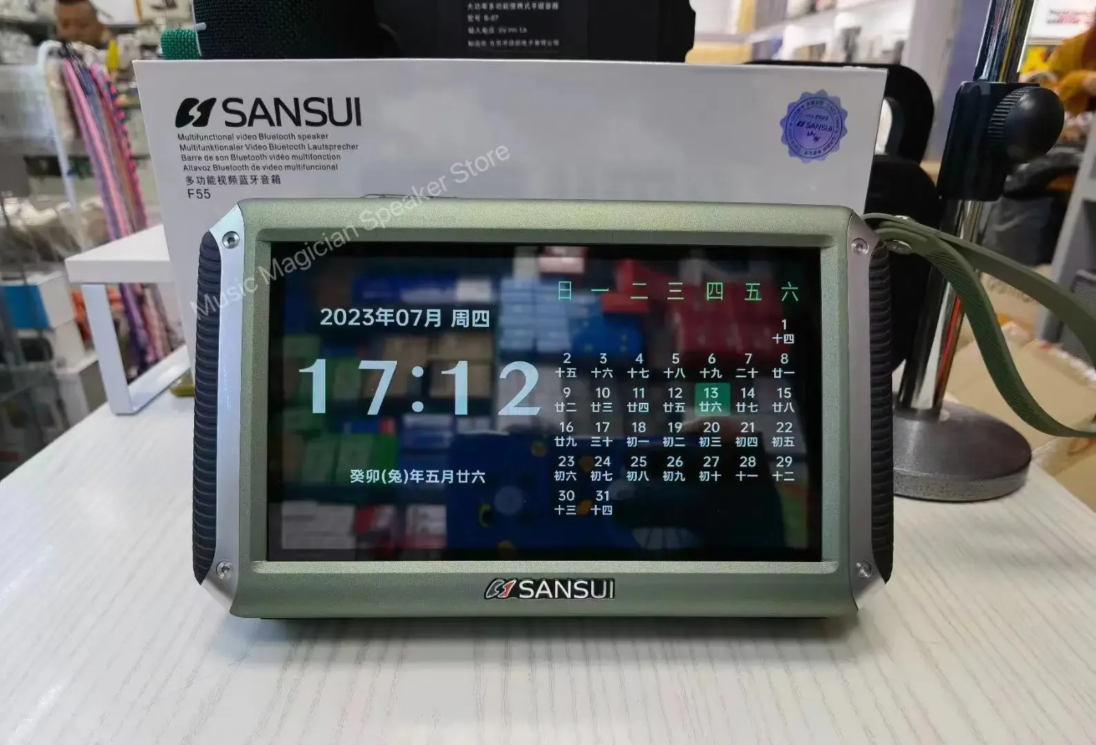 SANSUI F55 7-Inch LED Screen FM Radio MP4 Video Player Stereo Subwoofer Bluetooth Speaker Recorder TF USB Video Speaker