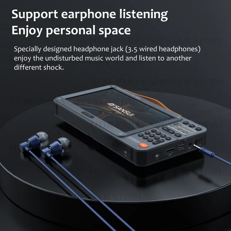 SANSUI LED HD Video Player FM Radio Portable Wireless Bluetooth Speakers Hi-Fi and Big Volume Rechargeable MP3/MP4 Music Player