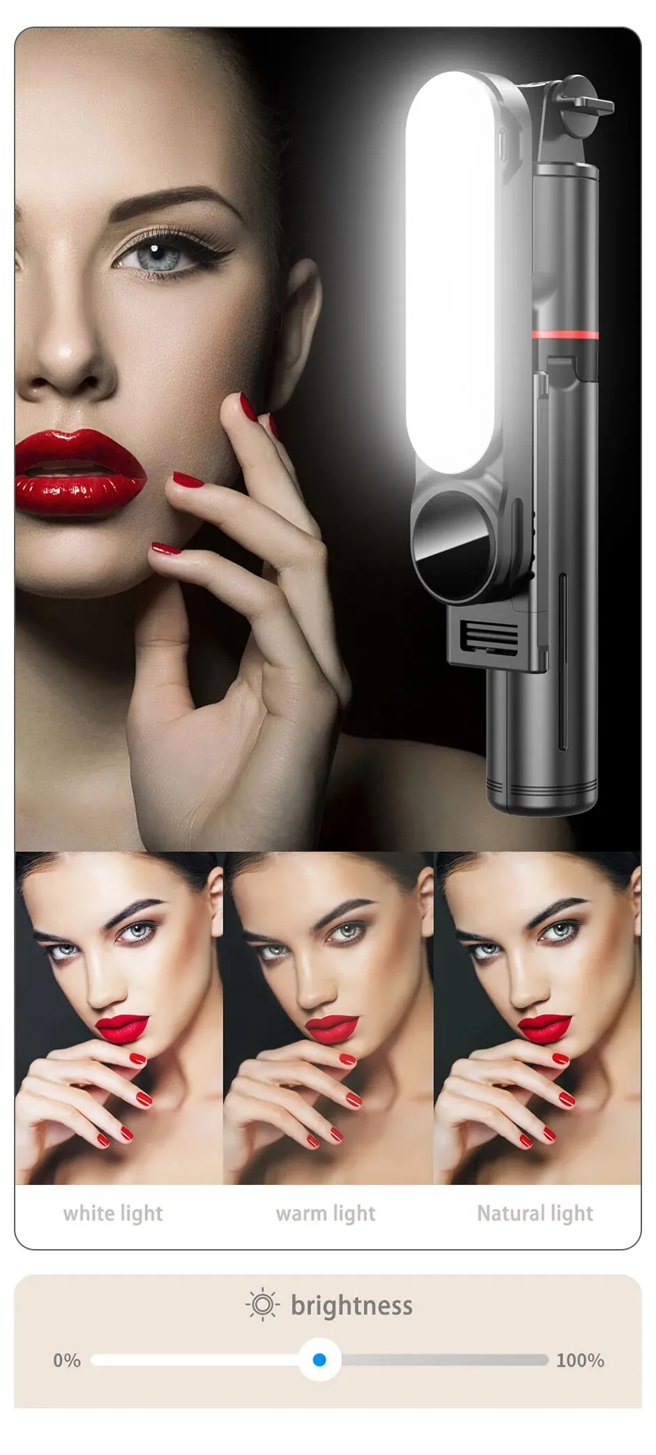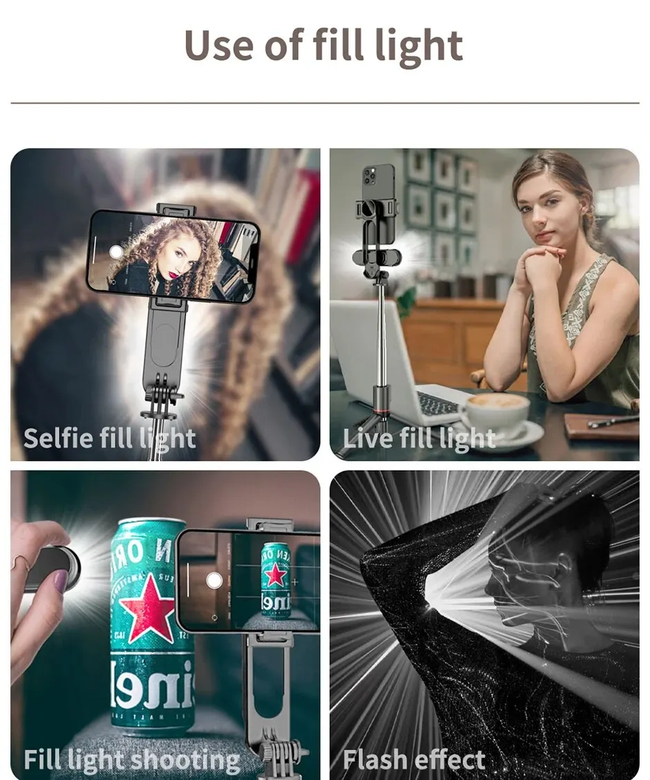 Selfie Stick Tripod with LED Fill Light Wireless Bluetooth for Iphone Samsung Huawei Mi Cell Phone Smartphone Gimbal Stabilizer