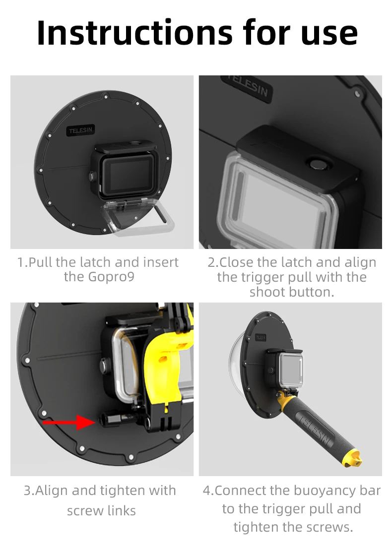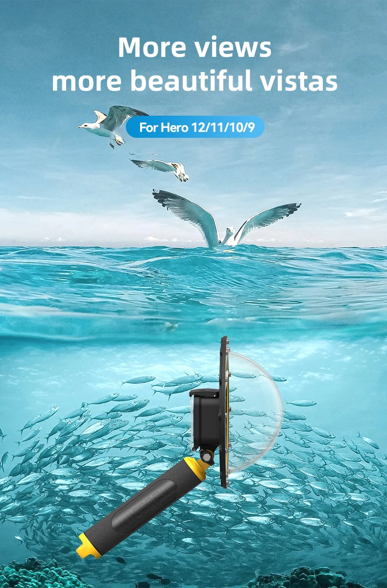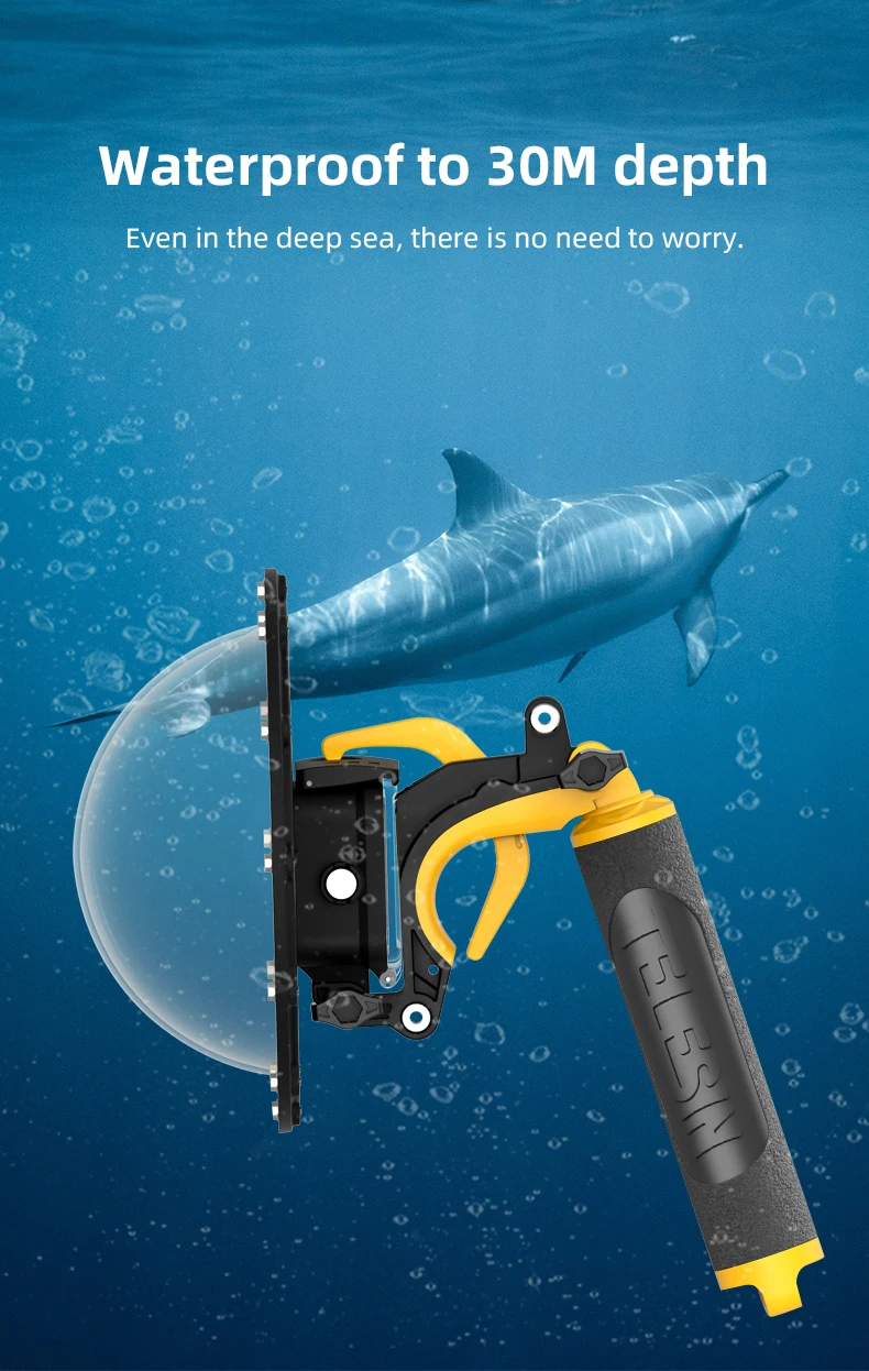 TELESIN 30M Waterproof 6'' Dome Port Underwater Housing Case with Floating Handle Trigger for Hero 13 12 11 10 9