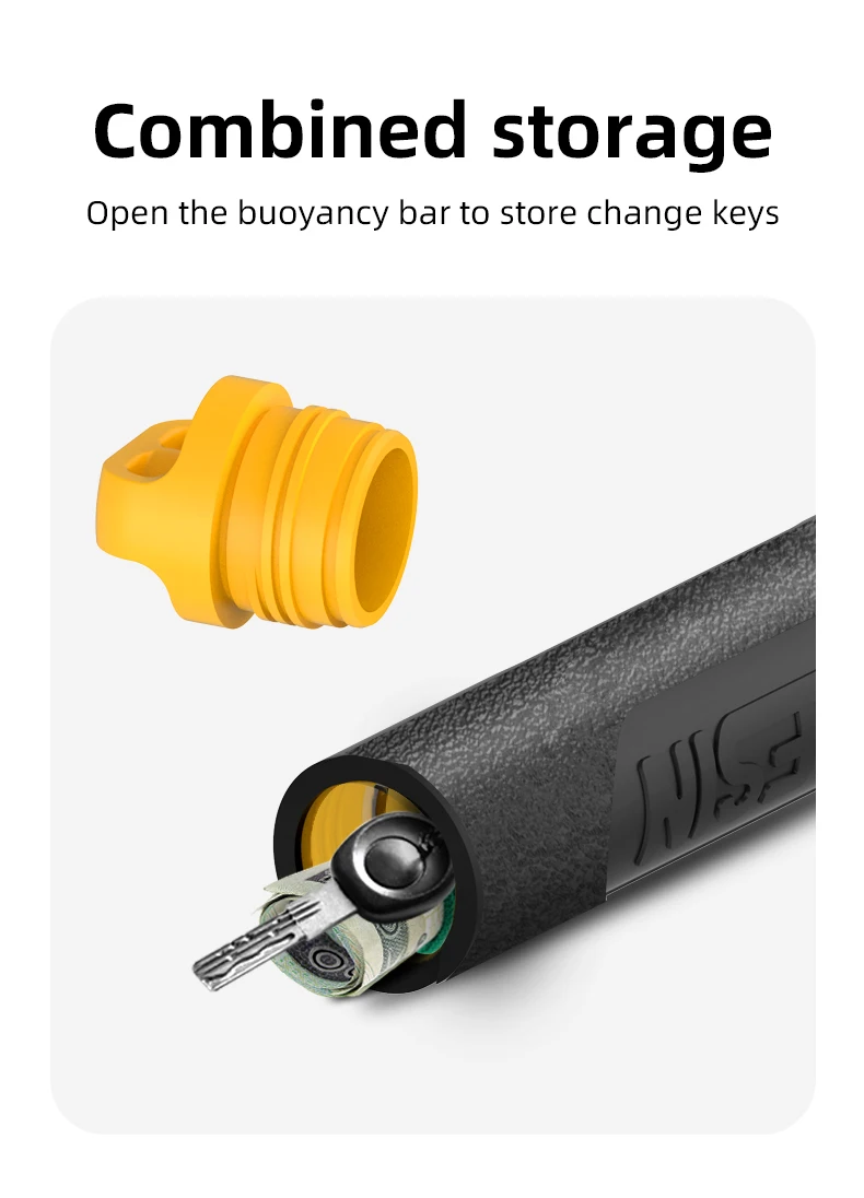 8. Hand Grip can be unscrewed to reveal a hollow compartment that can be used to add water (to achieve neutral buoyancy underwater) or store small items.