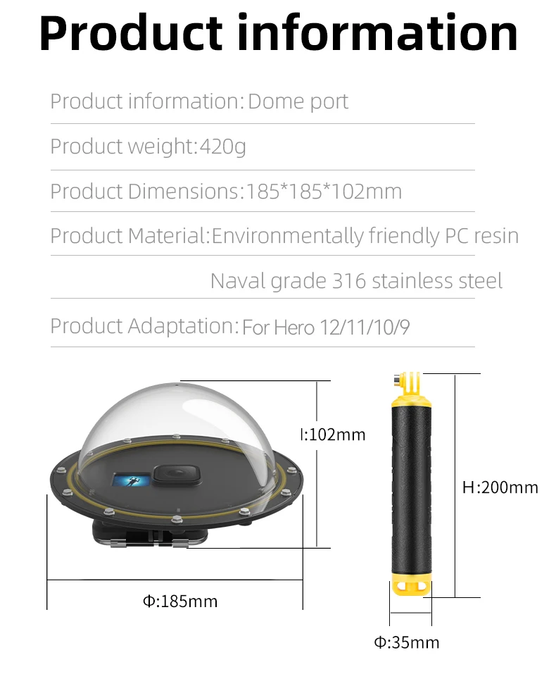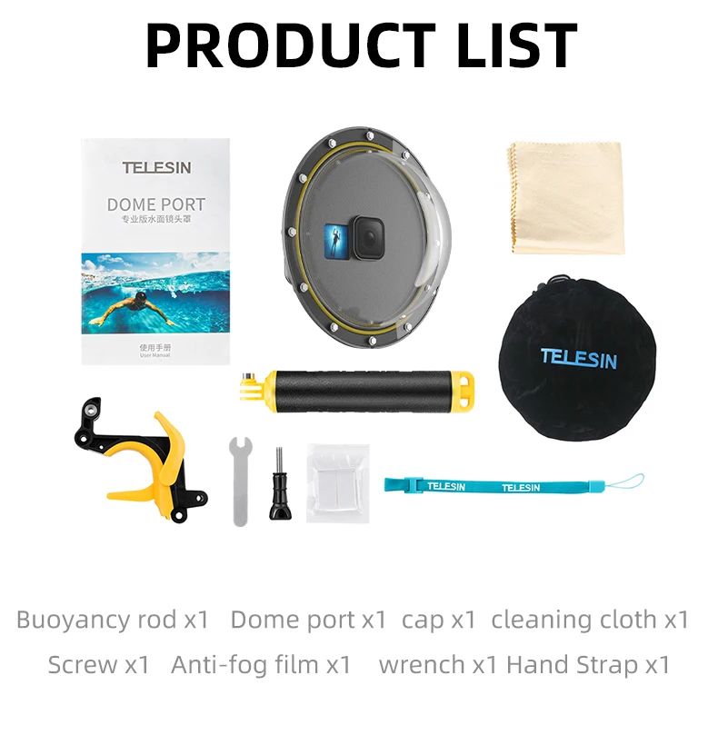 1 x TELESIN Dome Port for GoPro Hero 13/12/11/10 /GoPro Hero 9/for GoPro Hero 8/for GoPro Hero 5 6 7 Black(As your choose)
