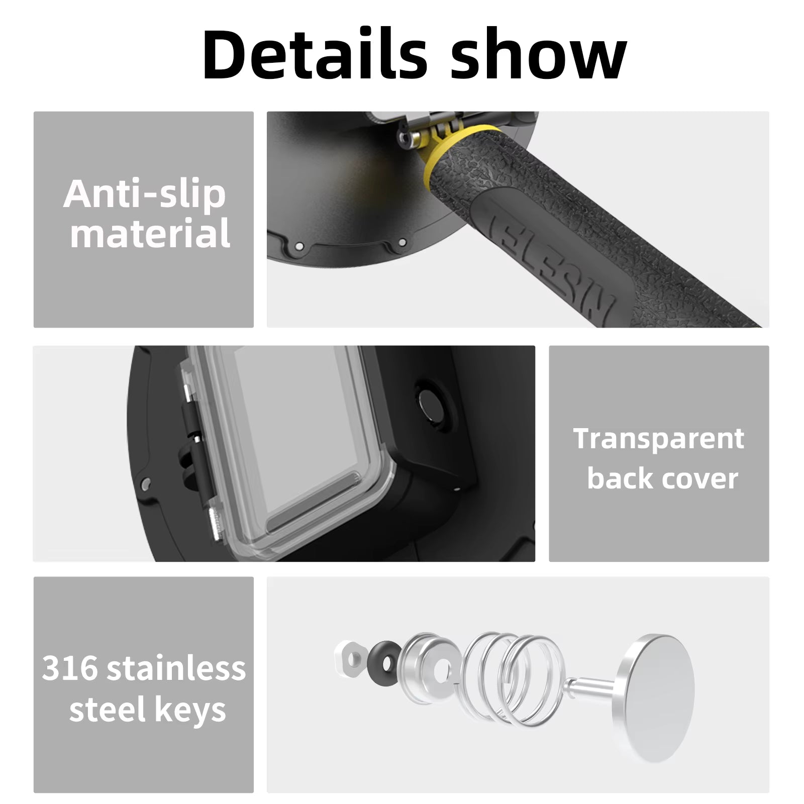 11.CD Anti-Fingerprint Design:Navigation special 316 stainless steel material,wide the button head,protect your camera