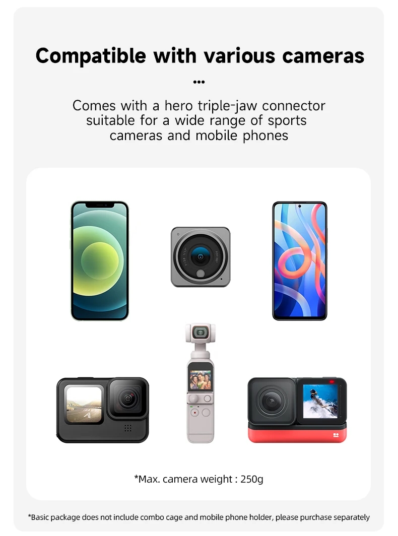 Suitable Action camera model: For Gopro Hero 13 12 11 10 9 8 7 6 5,For DJI OSMO Action 1 2 3 4,For Insta360 X2 X3 X4,Ace Ace pro. Most other action camera models on the market are suitable