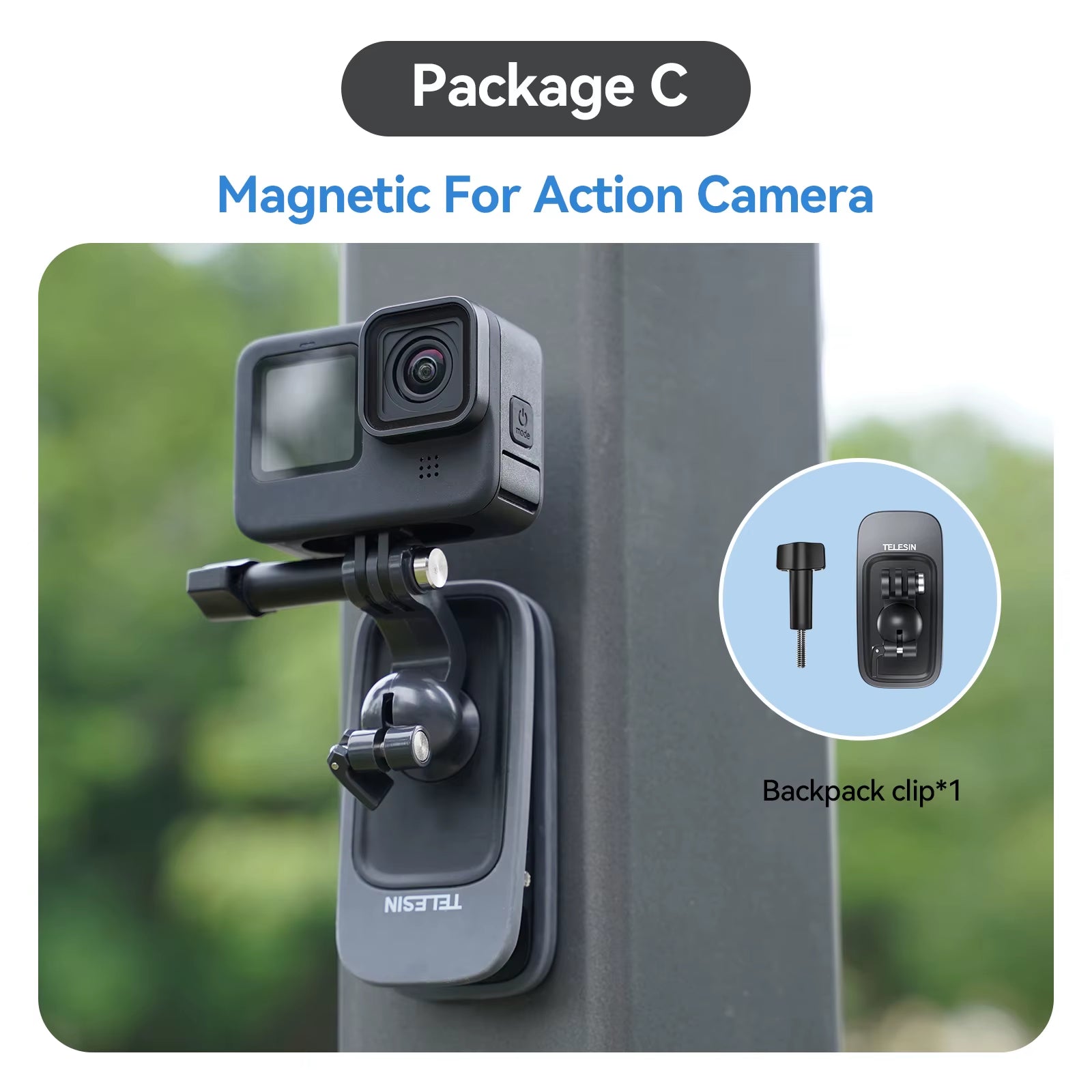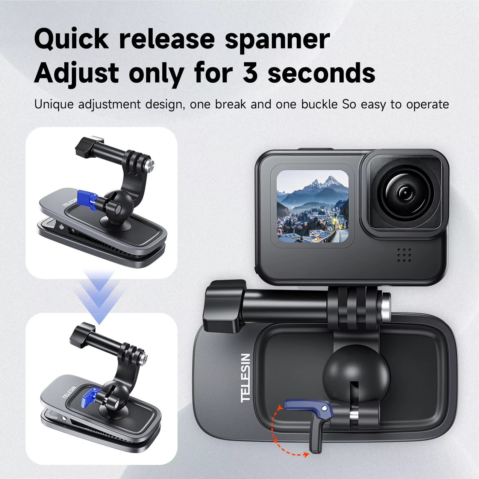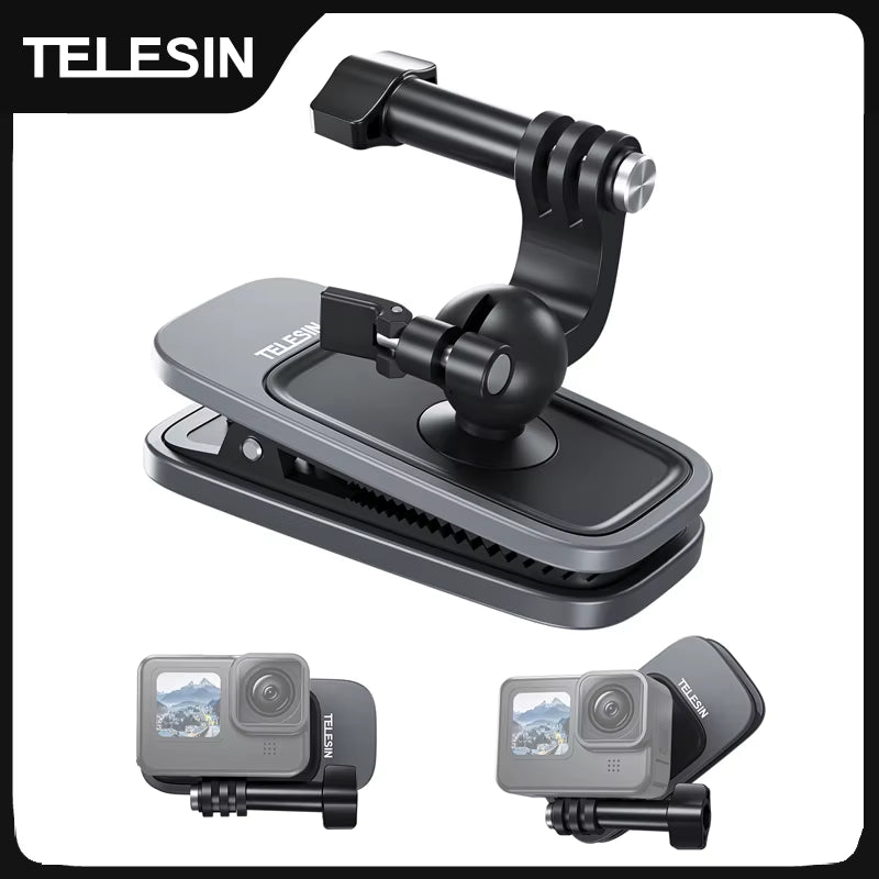 TELESIN 360° Rotation Magnetic Backpack Clip Clamp Mount for Hero 13 12 11 10 9 8 7 Insta360 DJI Action Camera Accessories