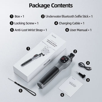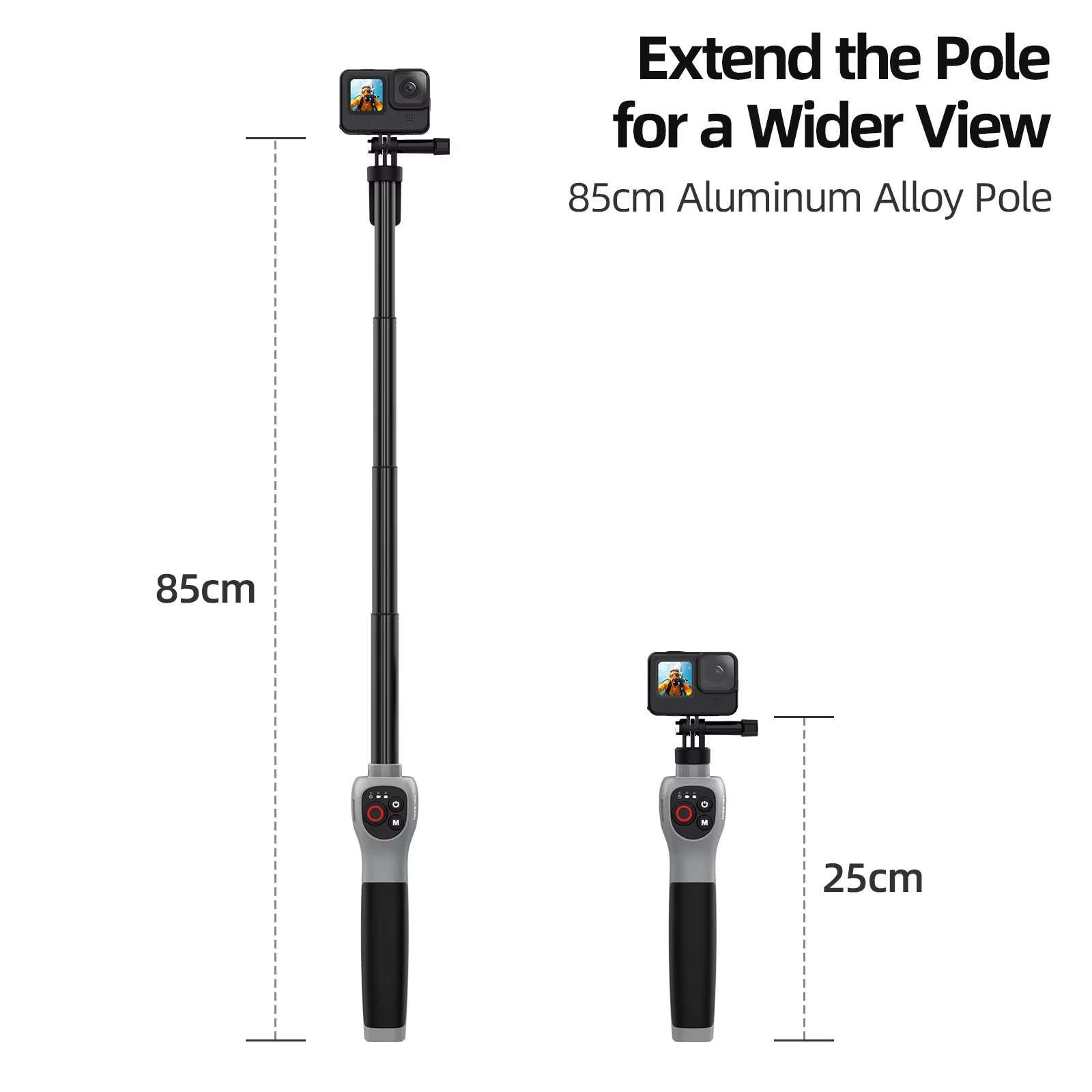 【Extendable & Lightweight And Easy To Use】It only weighes 9.8 Ozs / 267 g. Length: 7" when collapsed, And this extension pole could be adjusted to a maximum length of 33 inches, granting an expansive field of view. In addition, we are equipped with anti slip ropes to prevent hands from slipping when underwater.